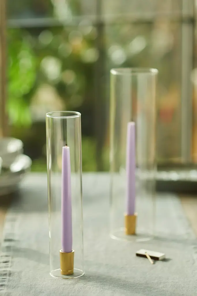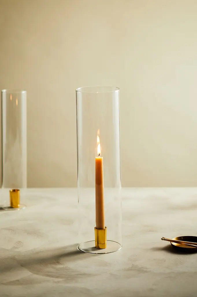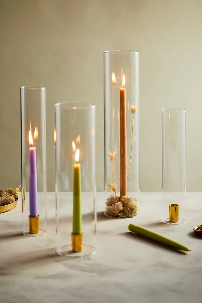 Pair with taper or pillar candlesticks to shield flames from blowing out. The open base allows for easy placement over lit candles to elevate a tablescape and add a reflective glow to any candle arrangement.