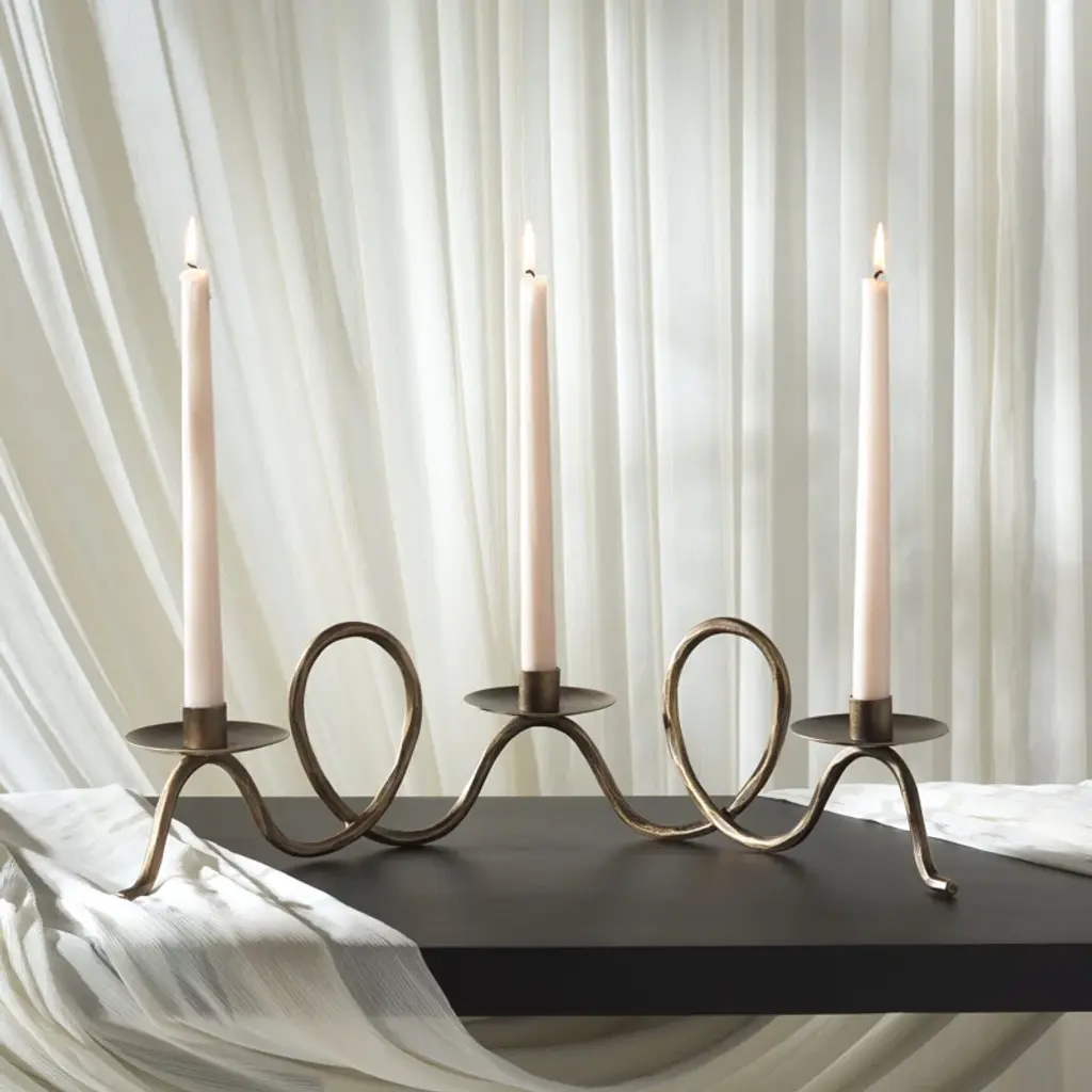 Elevate your room decor with our Rope Candleholder Centerpiece in exquisite brass metal. Crafted to blend timeless elegance with modern charm, this centerpiece effortlessly enhances any space. Ideal for dining tables, mantels, or as a stunning focal point for special occasions, its intricate metal rope design adds a touch of sophistication. Illuminate your home with the warm glow of candles, creating a cozy ambiance that welcomes both guests and relaxation. Perfect for those who appreciate artisanal craftsmanship and the allure of fine detailing.