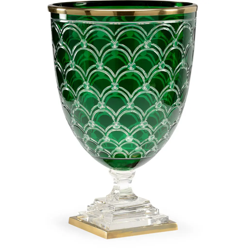 The prominent arches on the facade of the glass-roofed conservatory, located in the four-acre walled garden, inspired the elegant pattern on this hurricane.