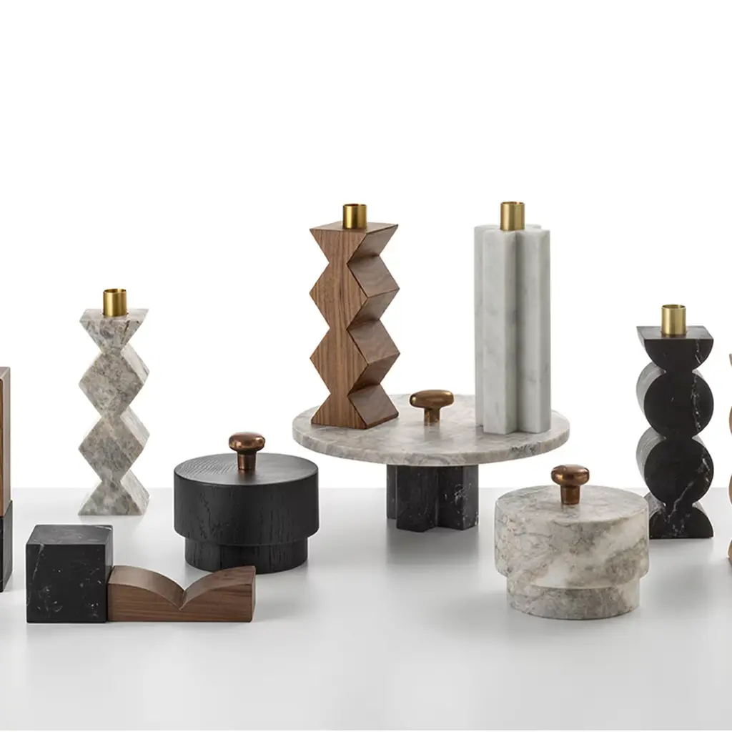 An elegant candleholder in black Marquina marble with a candle-hosting brass ring, this fascinating design is part of the refined collection named after artist Constantin Brancusi. His abstract sculptures are evoked in this precious candleholder, which flaunts a silhouette of circular elements combining convex and curved lines enriched by the marble's peculiar veining. A refined gray gift box displaying Colè's silver logo houses the piece.