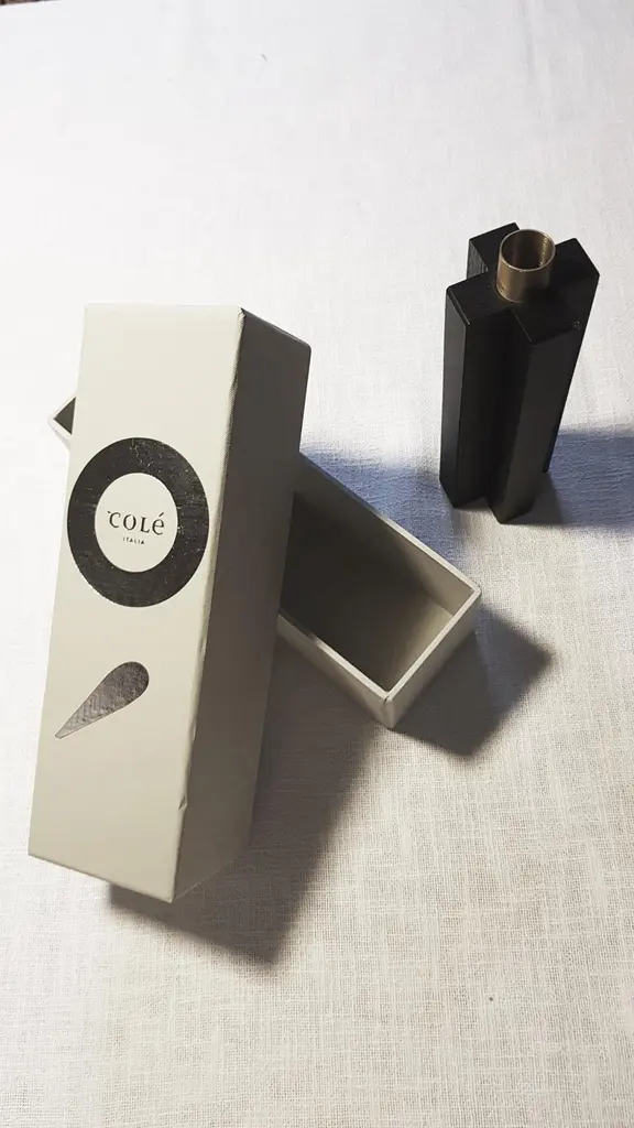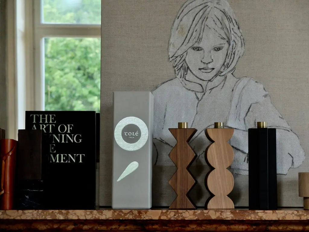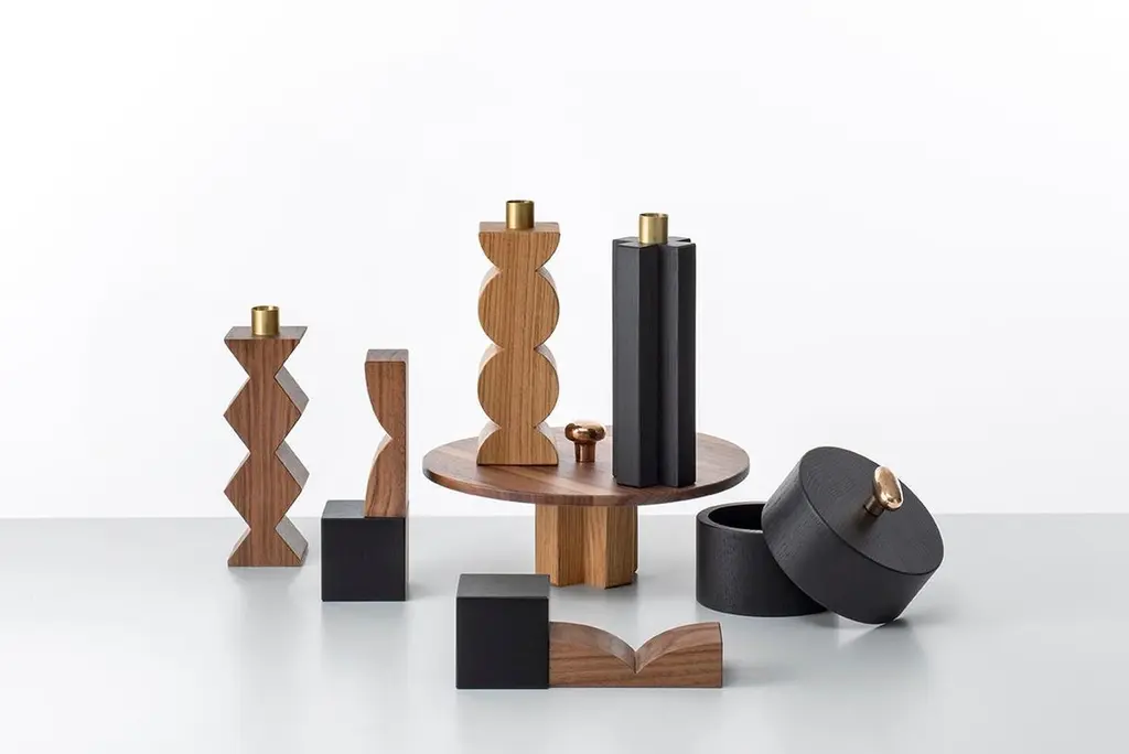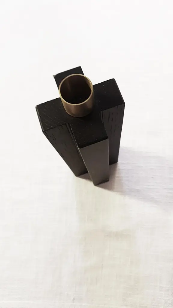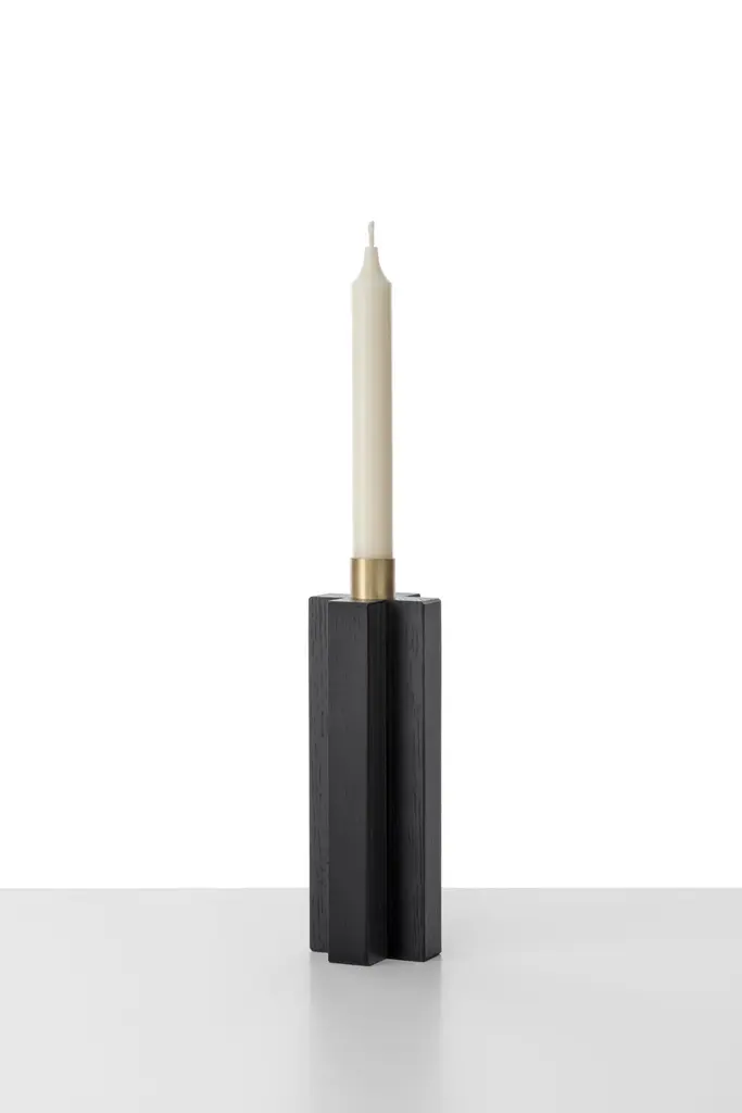 Constantin is a simple but charming candleholder with a geometric shape. The body of Constantin I is in solid oak painted black shaped with a cross, Constantin III in Canaletto walnut shaped with rhombus. The cylinder in natural brass on the top is the place where to put an 18 mm candle.In the same collection 3 different models of candlesticks in wood or in marble. A perfect set for a present.Constantin collection owes its name to its inspirer. It is in fact the modern art of Constantin Brancusi that has guided the designer’s hand to conceive candelabra, bookends, containers and center pieces in wood, marble and brass. Taking up Brancusi ability to represent the essence of things with a high degree of abstraction, designer Agustina Bottoni has shaped the candlesticks and bookends thinking of the columns and bases of Brancusi famous sculptures. For the container and centerpiece she has been inspired instead by the works in which almost raw solid wood is contrasted with polished and mirrored metal.