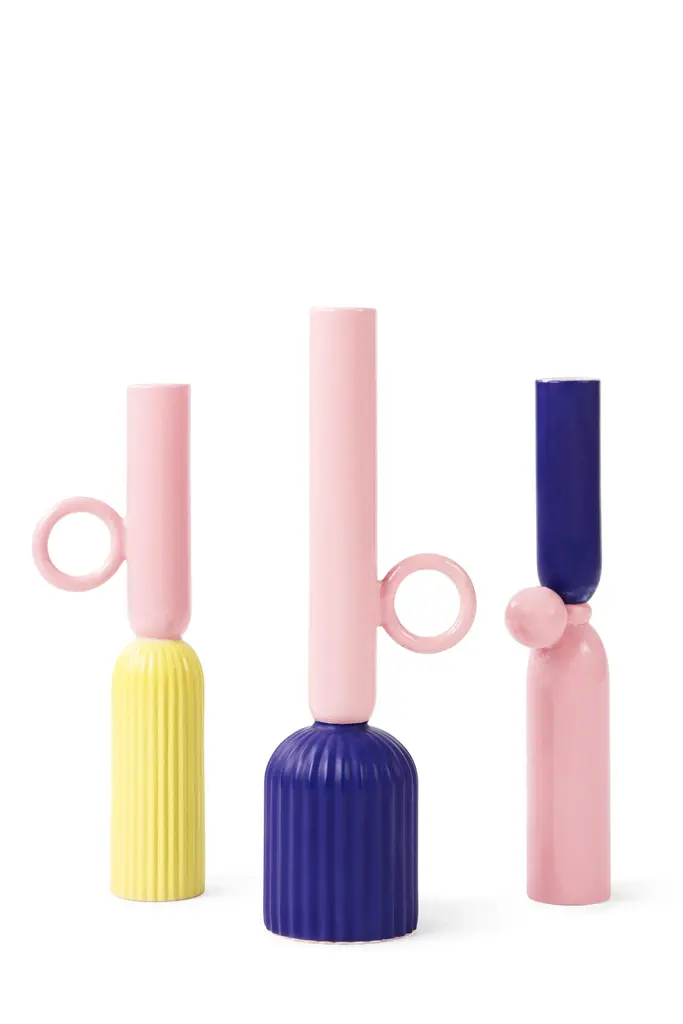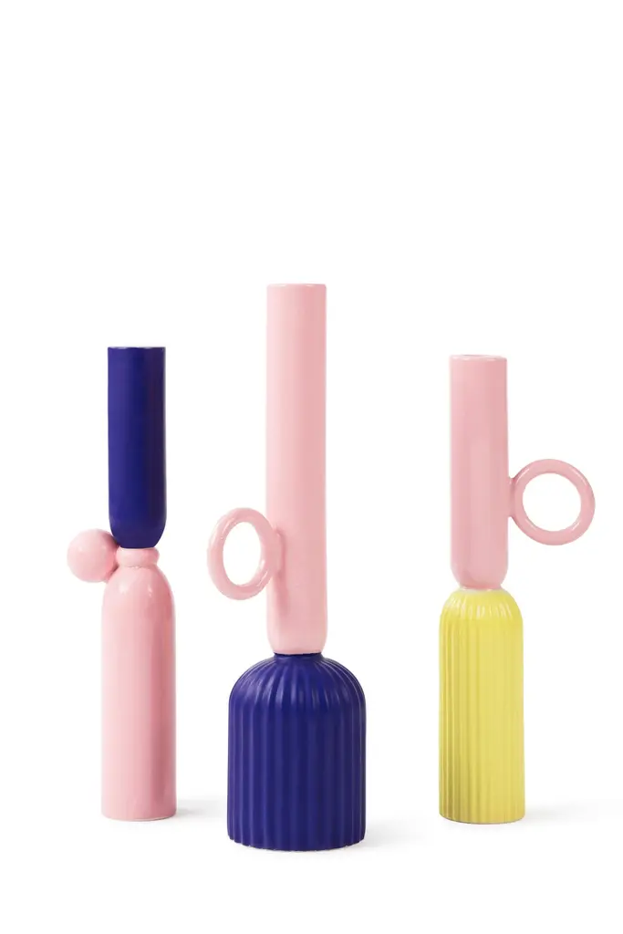 Contemporary ceramic candleholderNo.2 • Length 12.7 x diameter 6.6 x height 35 cmJoséphine was the first wife of Napoleon and the First Empress of the French. Recipient of numerous love letters from Napoleon, Joséphine was praised for her elegance, style and beautifully modulated voice. Patroness of roses, she wasknown for her passionate interest for these flowers that she collected from all-over the world. With soft pastel balanced by straightforward and vibrant colors, strong while graceful gown shapes, these three candleholders encompass the veryimage of a muse, tumultuous, passionate while sophisticated and delicate. An ode to feminity.ceramic in glossy and matte glaze finish.