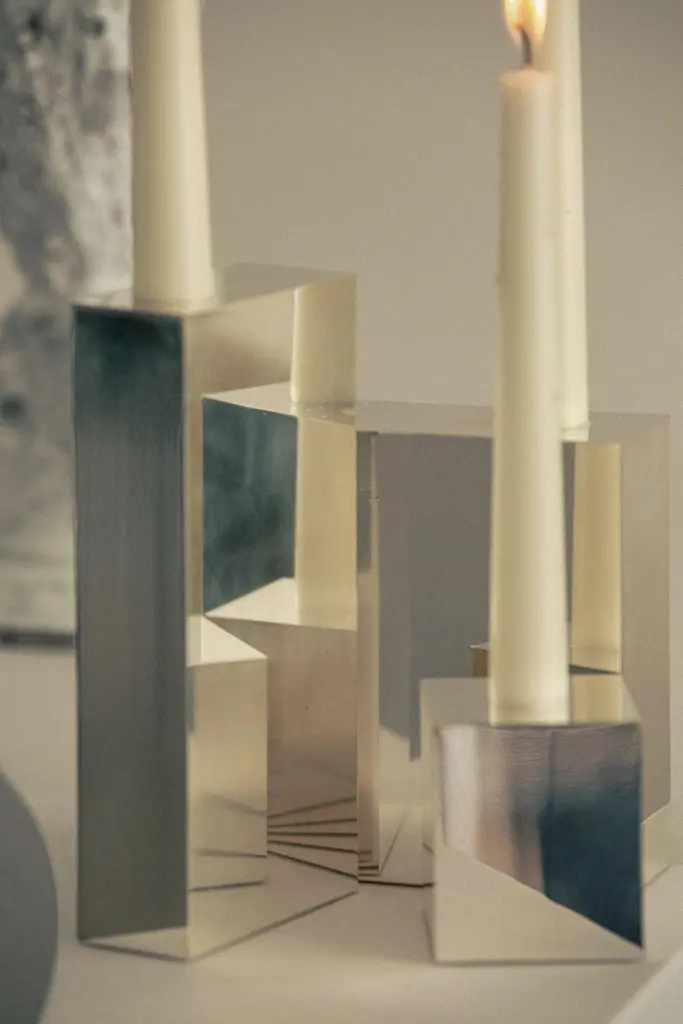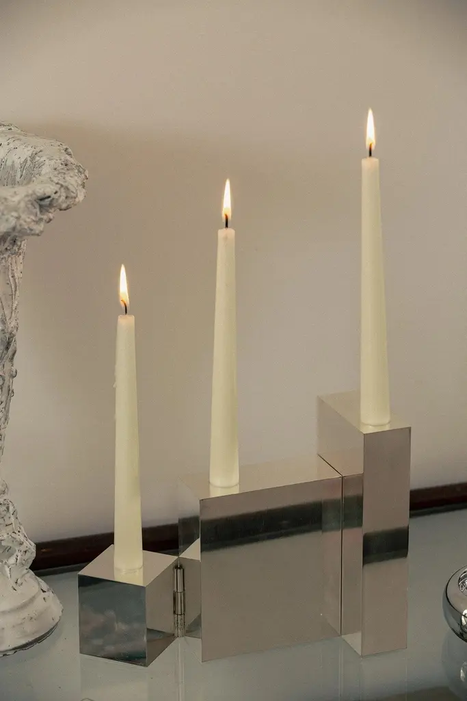 Contemporary Hinge Polished Silver Candelabra Candle Holders By Henry Wilson