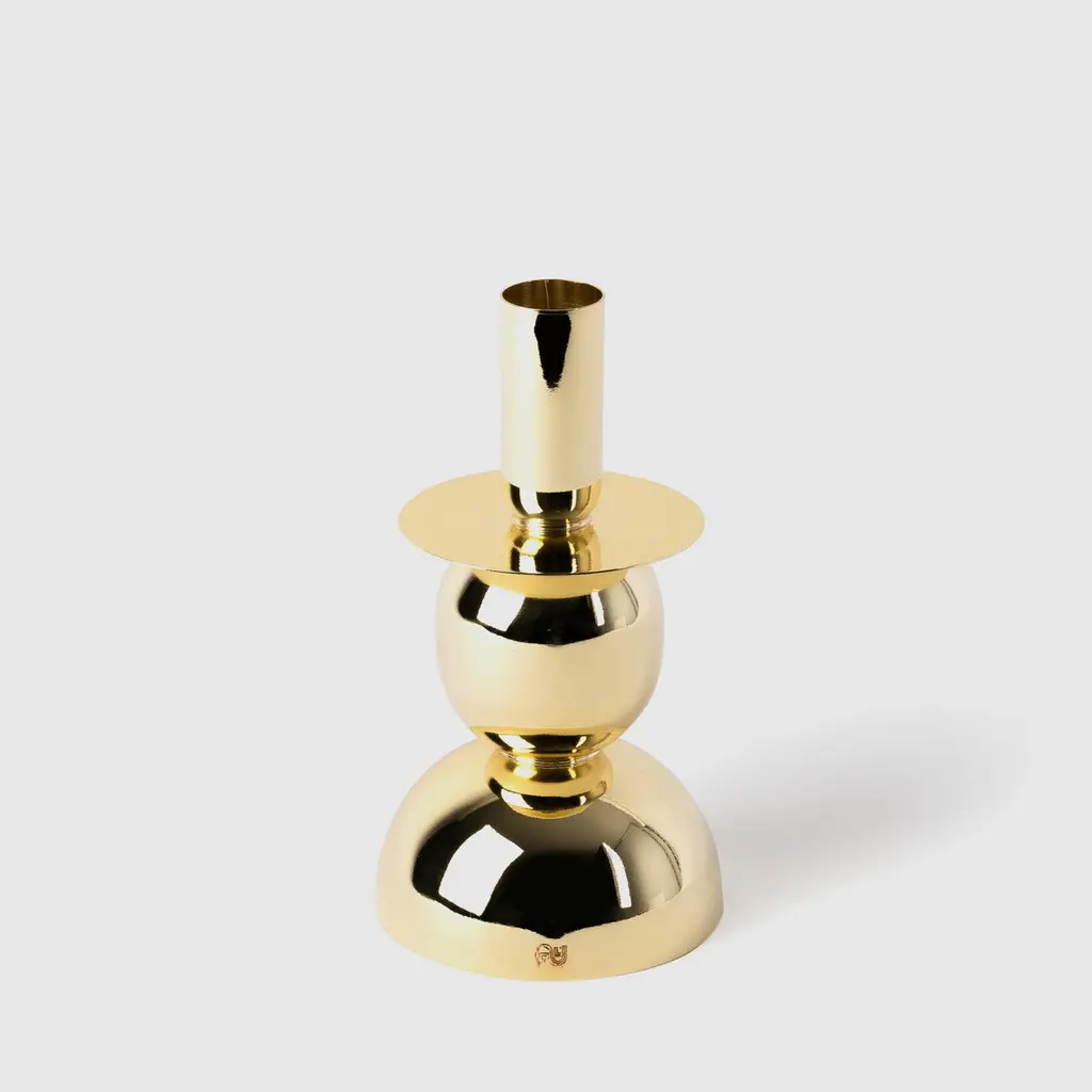 Contemporary Modern, Kubbe Large Candleholder, Varnished Brass