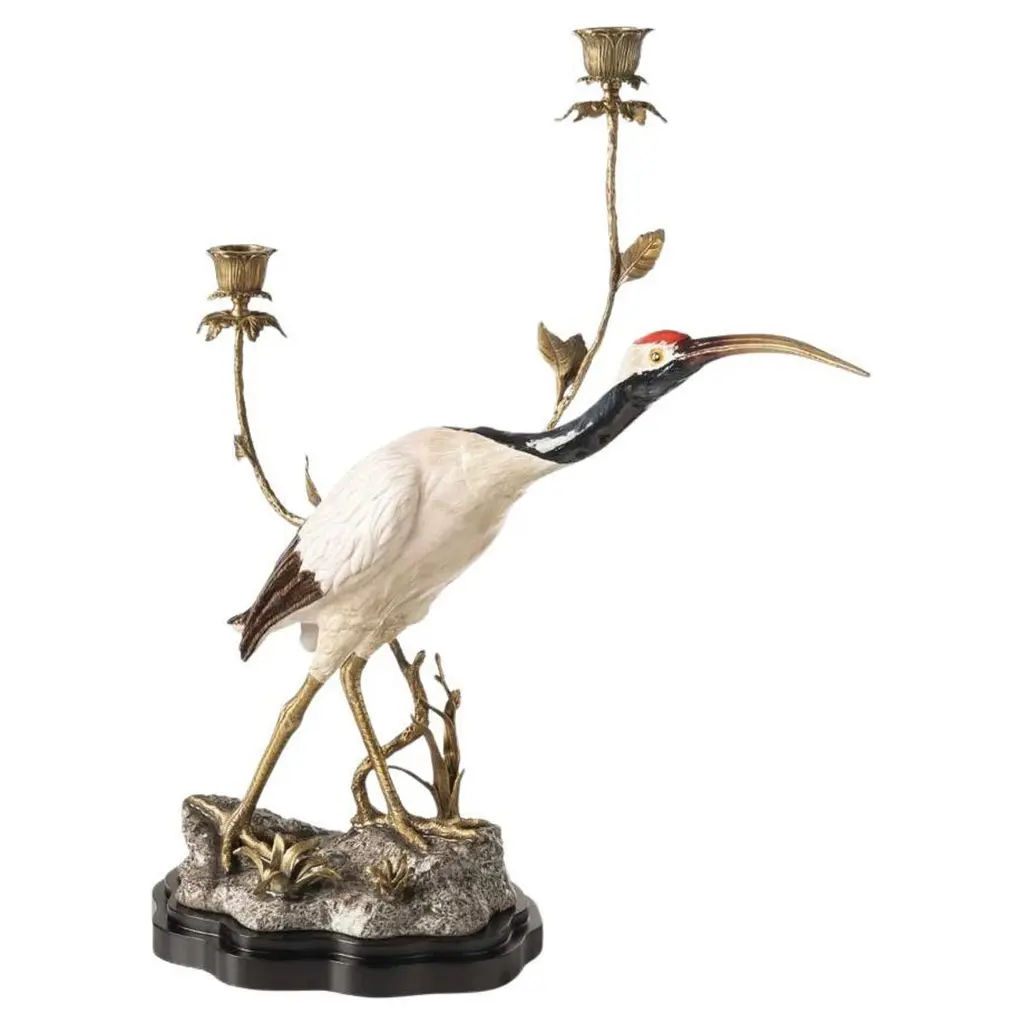 Coral Colored Porcelain and Bronze Parrot Candlestick by Gand & C, in New conditions. Designed from 2000 Stamped by Maker
