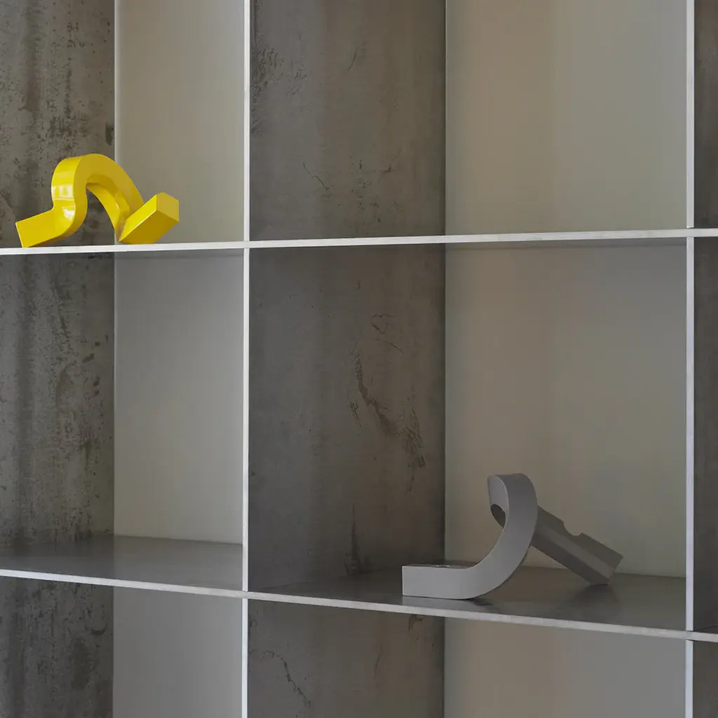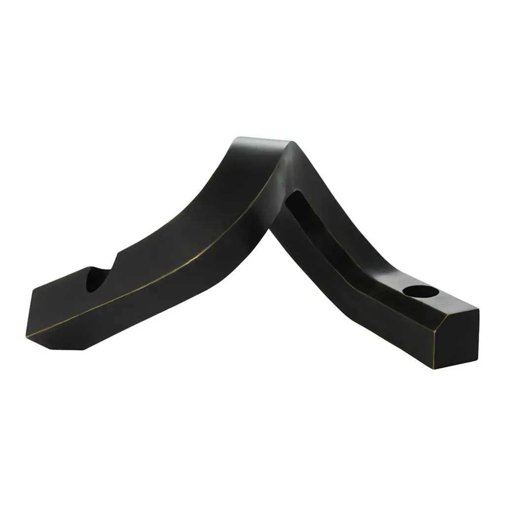 Crooked is a candlestick and decorative sculpture in one. A tribute to the designers love of "crooked" characters, Crooked draws inspiration from the intersection of design, art and architecture. Crooked Candlestick comes in two versions with room for either one or two candles, and in either painted aluminum or bronzed brass.