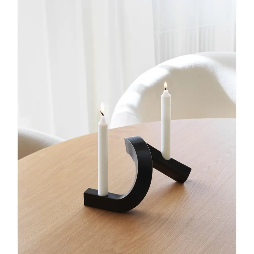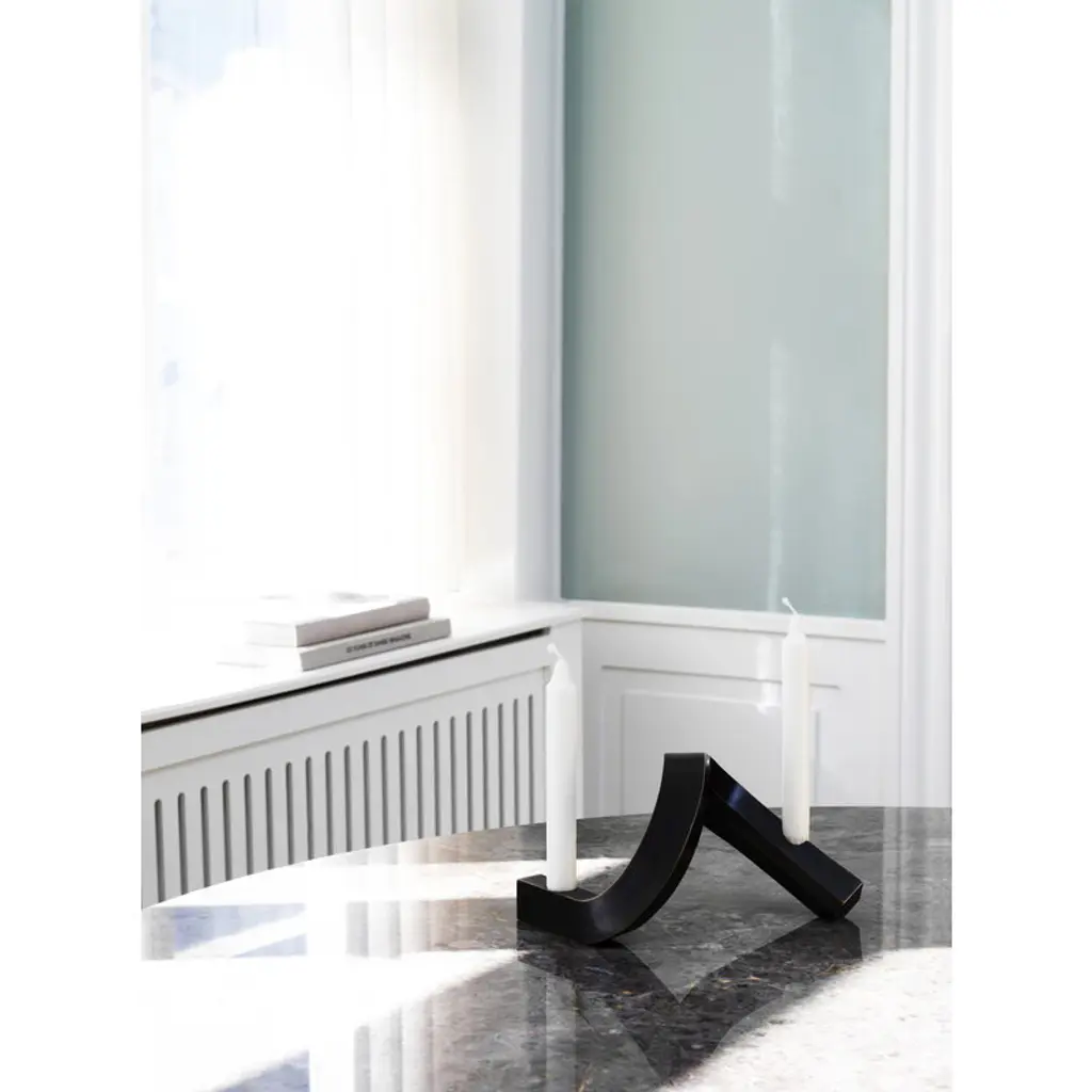 Normann Copenhagen's Crooked Two has a twisted appearance, created by Danish fashion influencer Uffe Buchard. Buchard drew inspiration for the candleholder from various sources including the worlds of design, art as well as architecture. The sculptural and modern Crooked Two enhances any table setting as a single decorative object but can also be combined with other candlesticks from the Crooked collection to create a fascinating, curved arrangement.