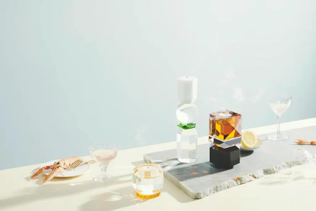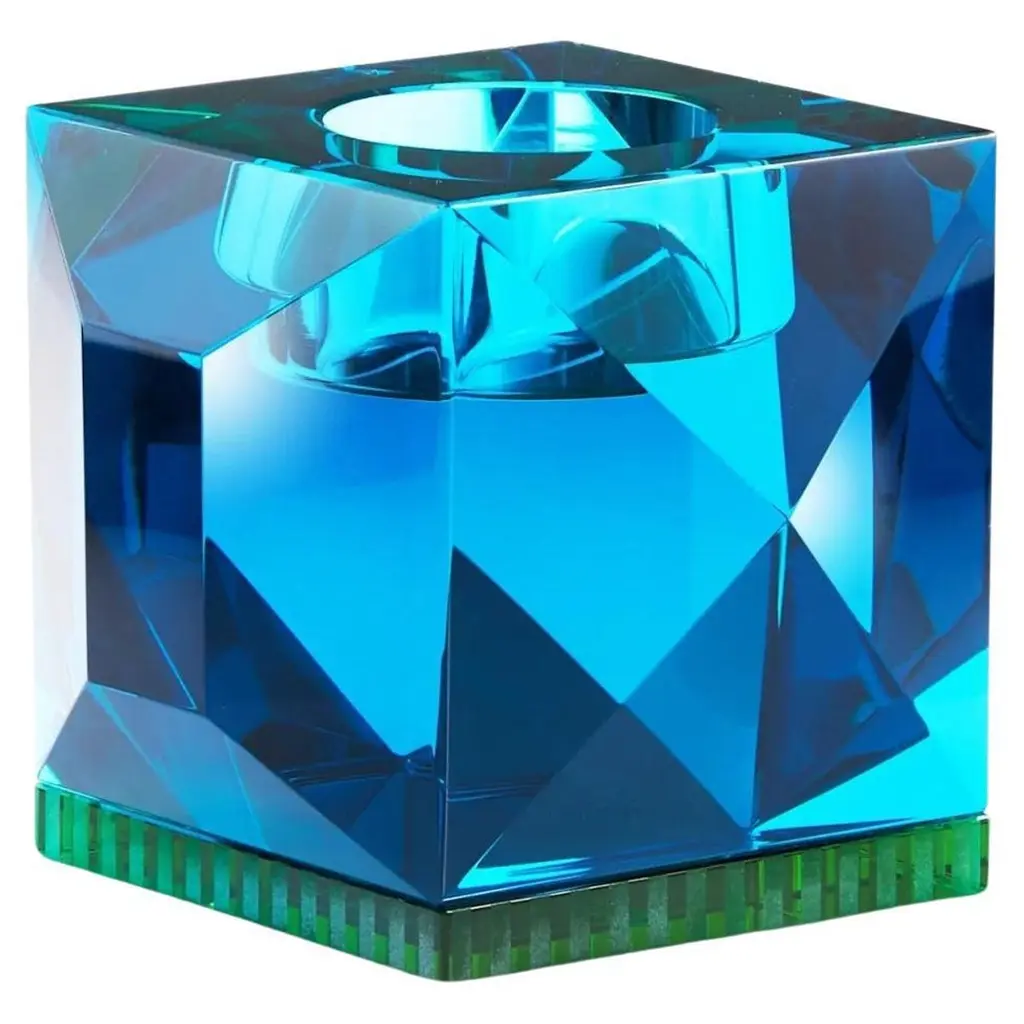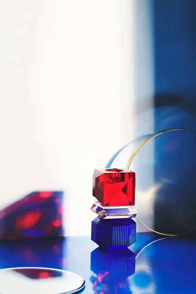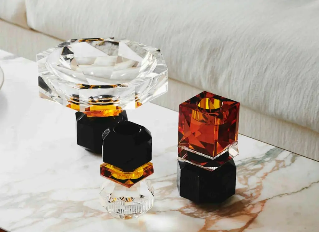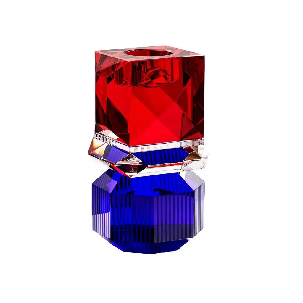 Crystal candleholder available in two colours: Amber/Transparent/Black and Red/Transparent/Cobalt. The balance between the transparency of the crystal and the glow of the candles creates a visual harmony that evokes a sense of calm and well-being. Estimated production time: 2 to 6 weeksh: 16.5cm; w: 9cm; d: 9cm
