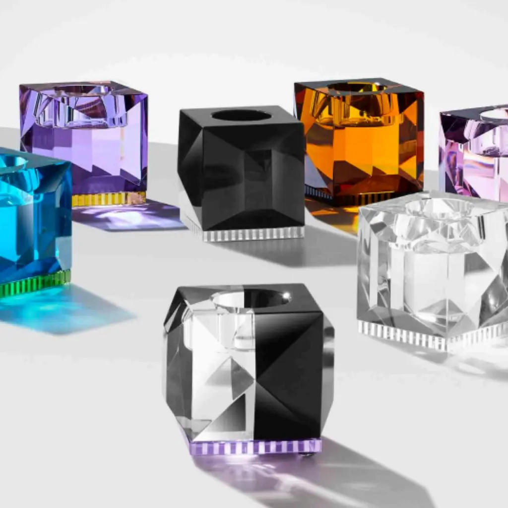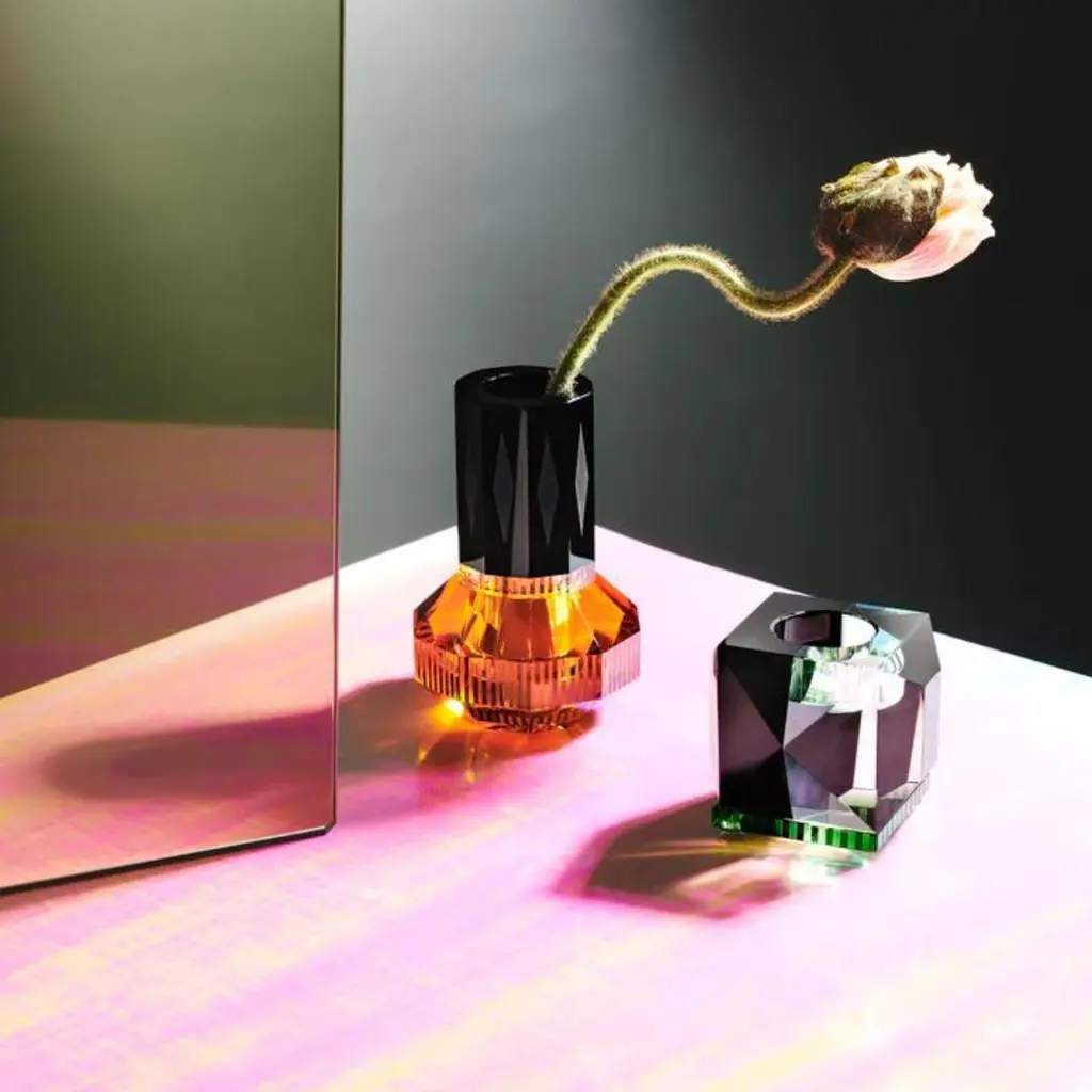 Crystal candlestick, OPH II model, 21st century.Crystal candlestick available in two colours: Transparent/Brown/Yellow, Transparent/Amber, Transparent/Pink and Transparent/Black. Each crystal candleholder is a work of art in its own right, combining exquisite craftsmanship with the sumptuous brilliance of crystal. Estimated production time: 2 to 3 weeks. h: 8cm; w: 9cm; d: 7cm