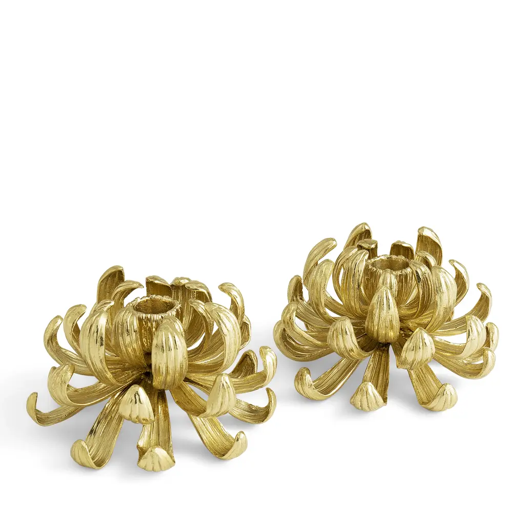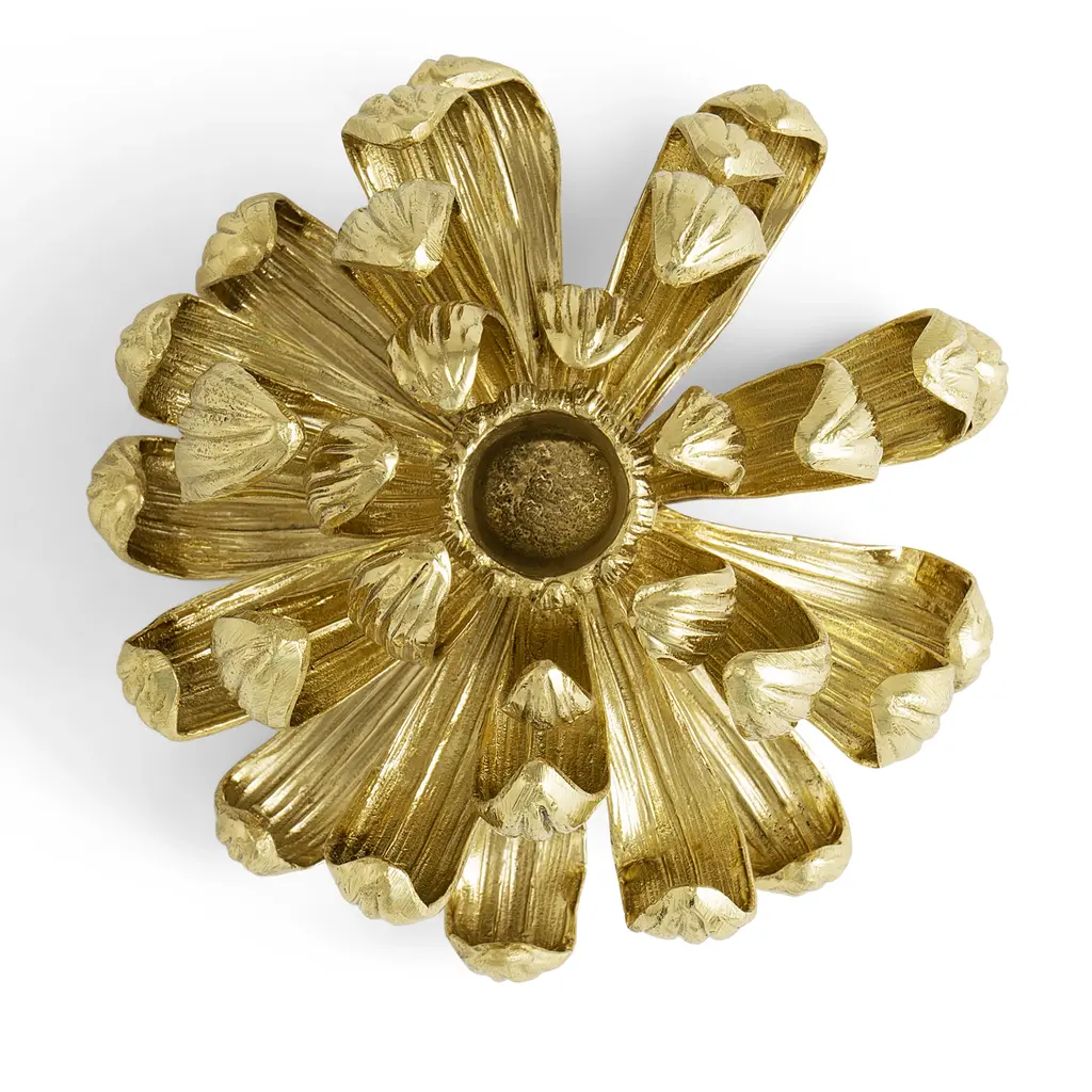 During the Victorian era, Dahlias were regarded as symbols of love and devotion. Michael Aram's Dahlia Collection captures this sense of romance by portraying the flower's interconnected petals in goldtone to emphasize their symmetry and spiraling pattern. In some pieces, Michael has chosen to contrast the radiant blooms against black granite and enameled stainless steel, evoking a mysterious sensuality.