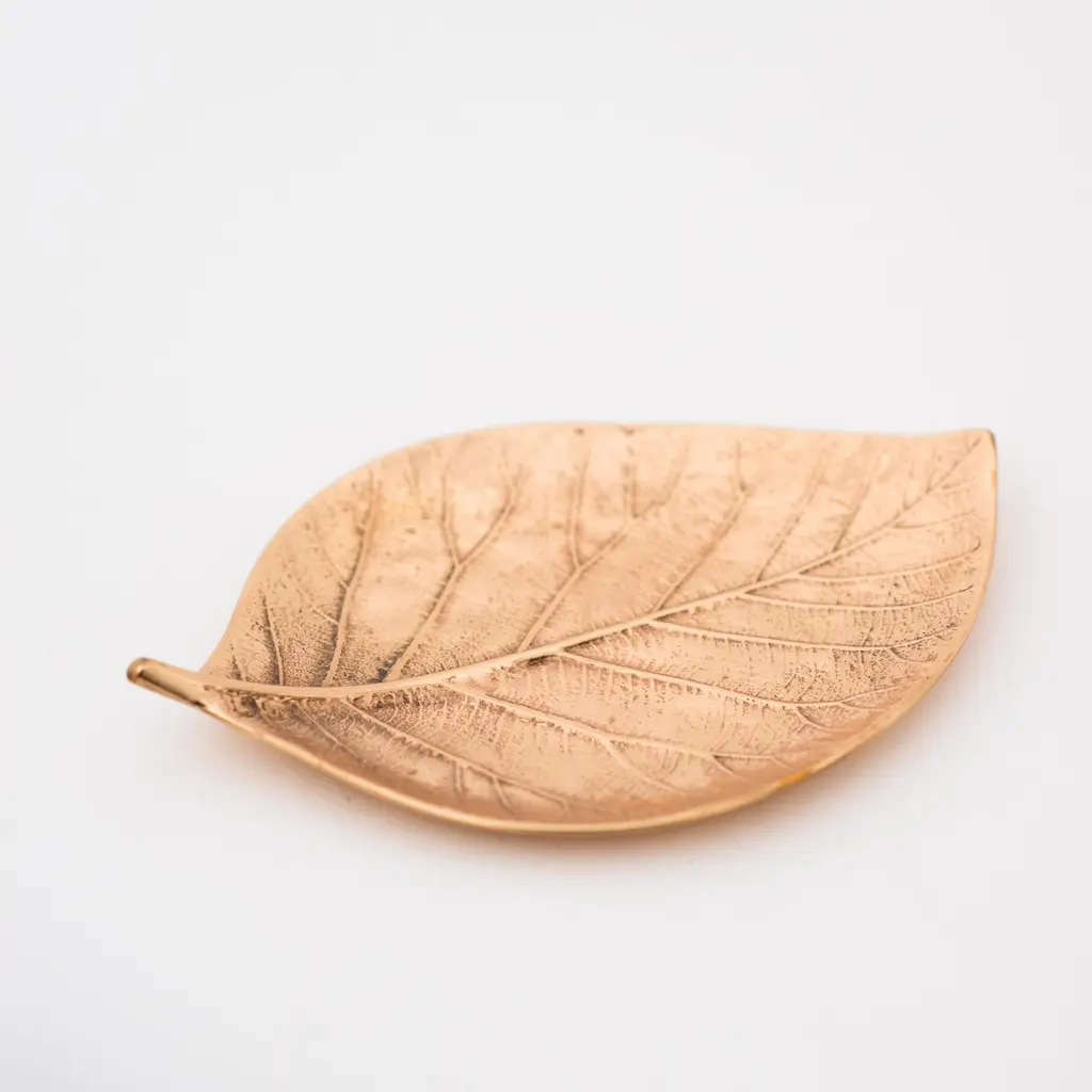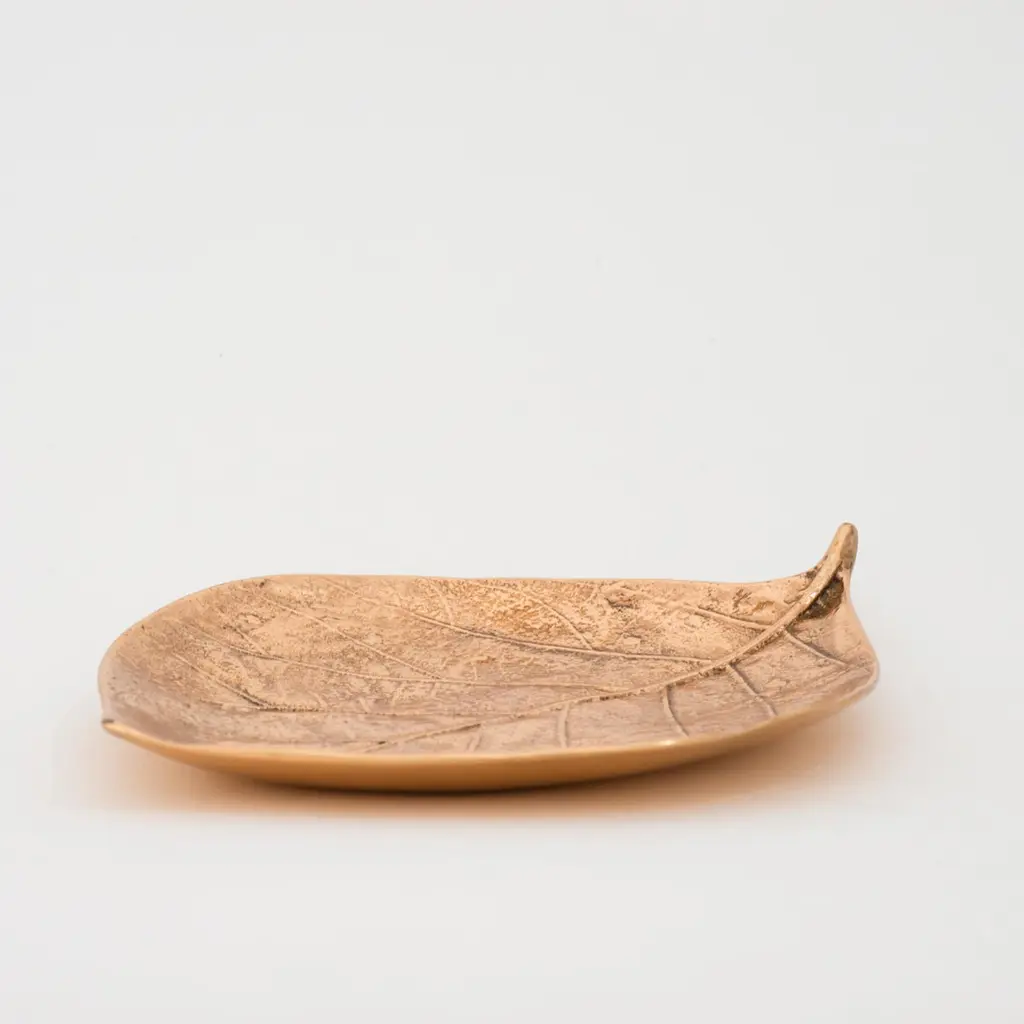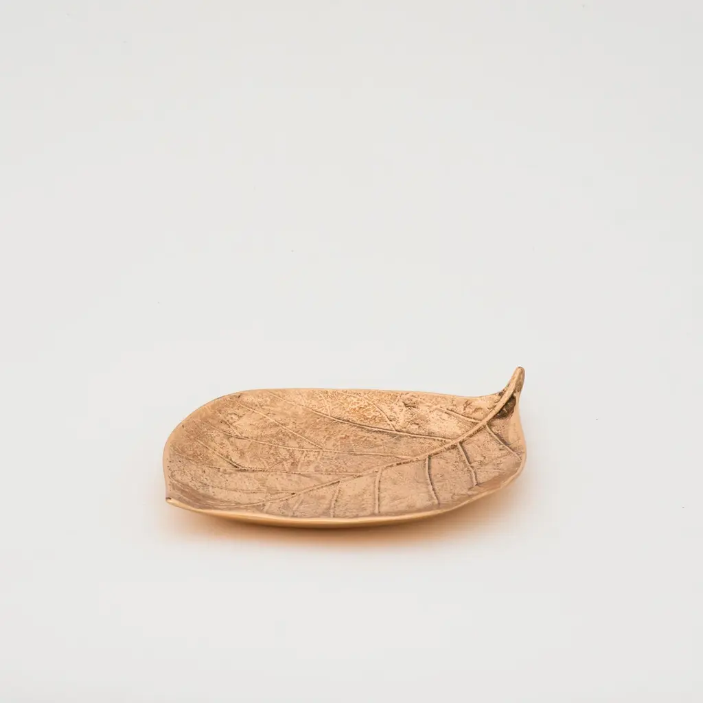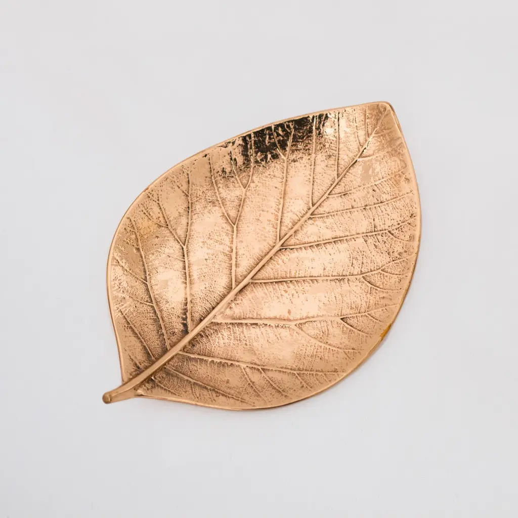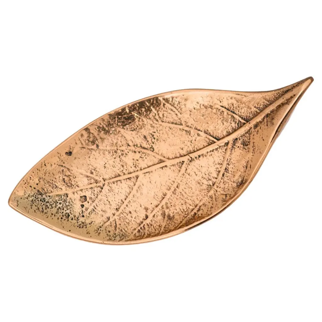 Decorative Handmade Cast Bronze Leaf Vide Poche Candleholder, Medium