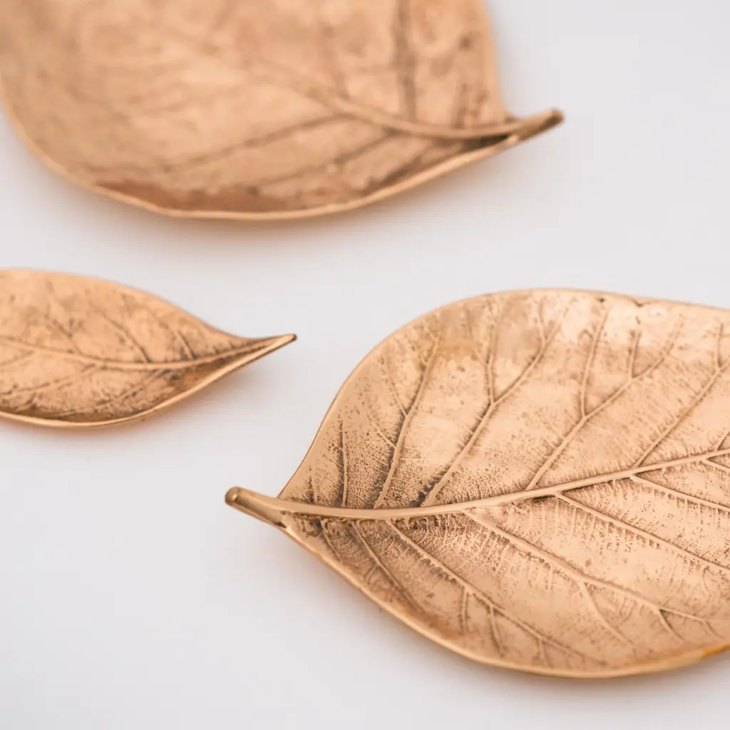 Each of these splendid bronze leaves is handmade individually with incredible detail. Cast using very traditional techniques, they are polished capturing the raw finish of this noble material and impressively highlighting every vein and detail.Used as candleholders or simply as very beautiful decorative objects.One medium sized leaf out of a cluster of three bronze leaves.Slight variations in the patina and polished finishes, patterns and sizes are characteristics of such original handmade creations. These characteristics enhance the beauty of the product and make each piece unique.Dimensions: H 3.8 cm x W 10.5 cm x D 18.5 cm / H 1.5 in x W 4.14 in x 7.29 inORDERS OF MULTIPLE ACCESSORIES OF THE SAME TYPE: Please contact us to receive a Packing and Shipping quote when ordering multiple accessories of the same type. An order for multiple accessories of the same type may not be accepted without extra packing and shipping fees. Thank you.