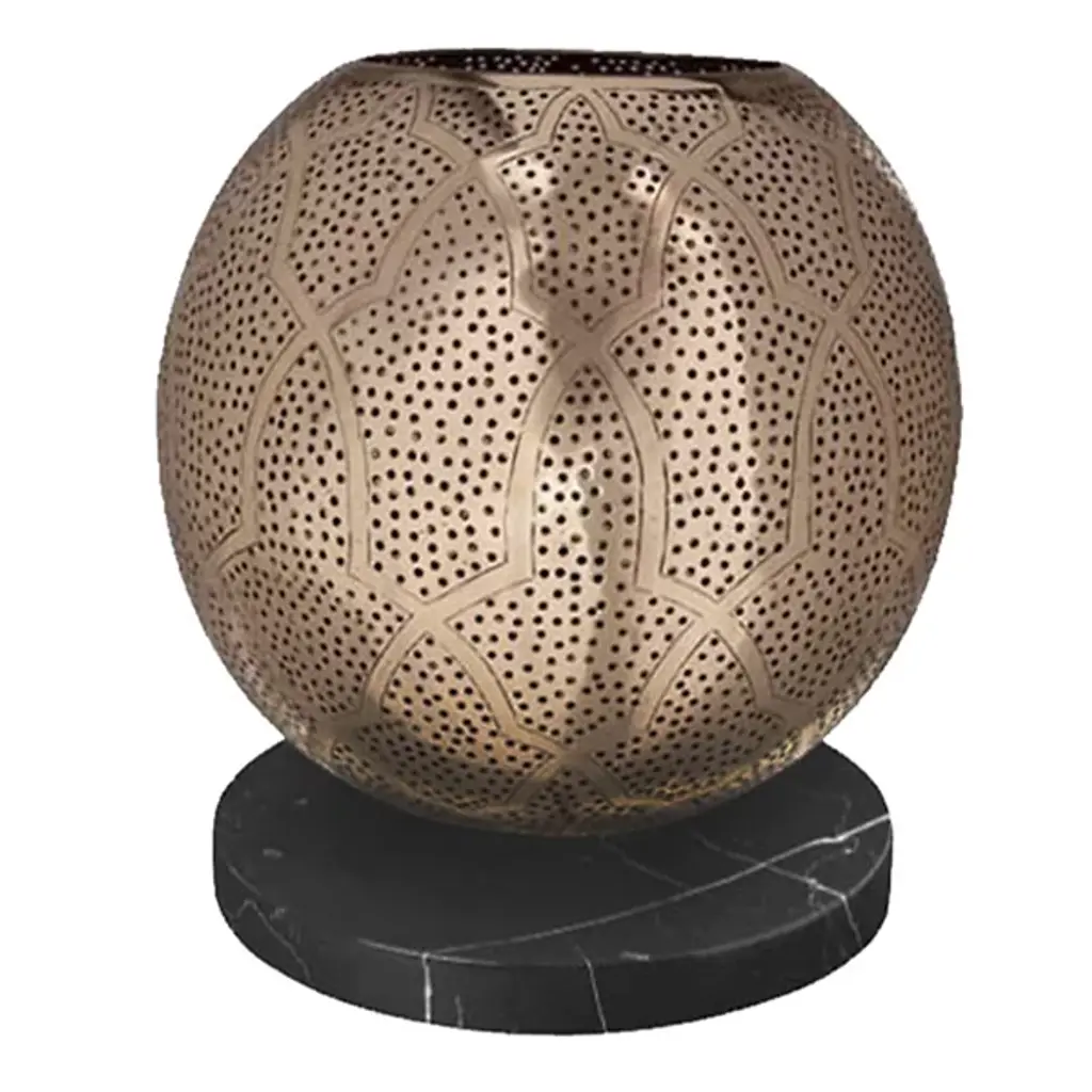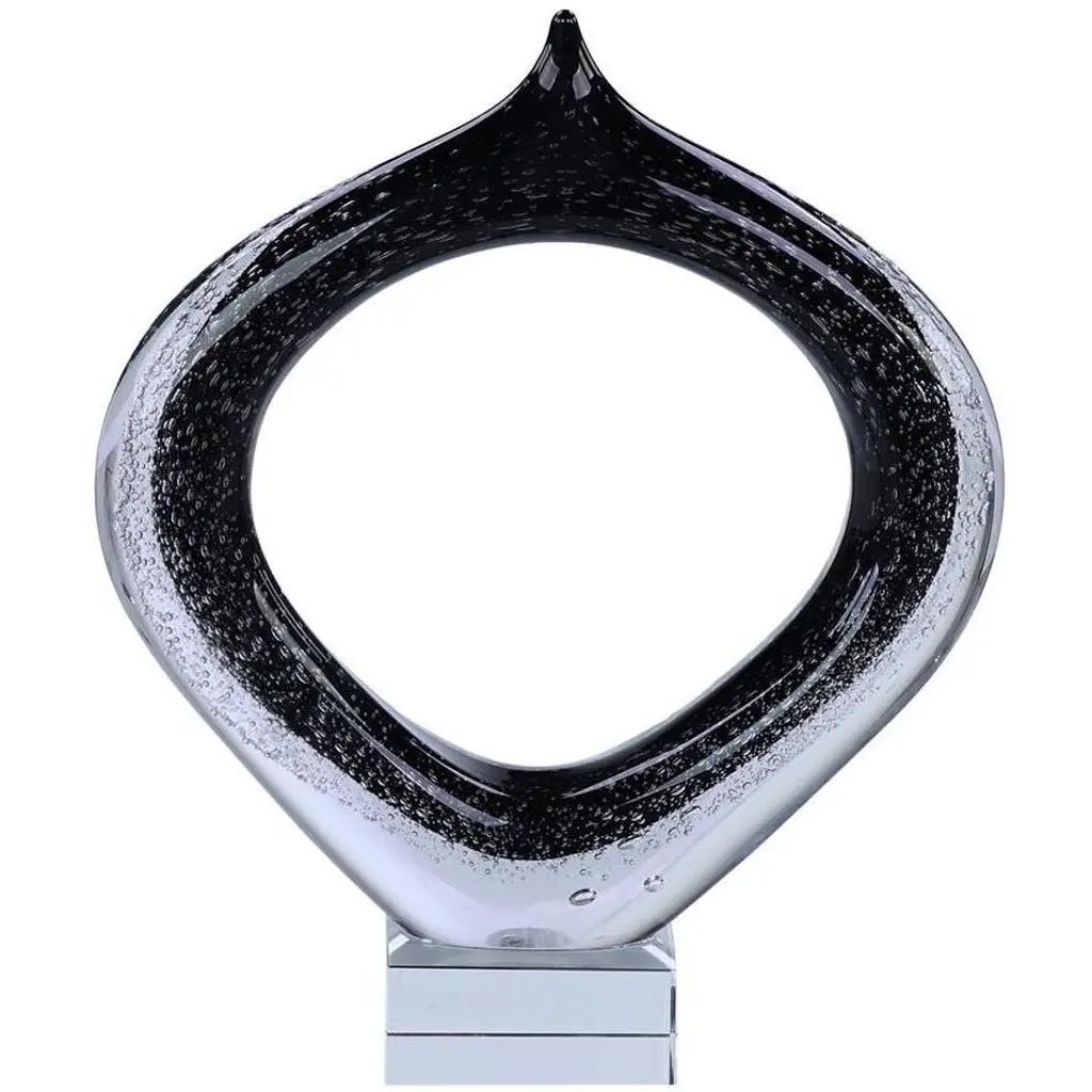 Part of the Delaìra collection, this piece fully represents the craftsmanship of Venetian glassmiths. The glass sphere is diagonally cut and gently rests on the Calacatta gold marble base, creating an elegant contrast.