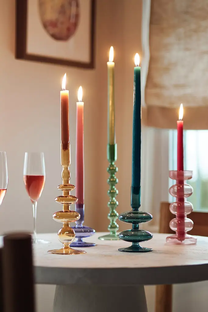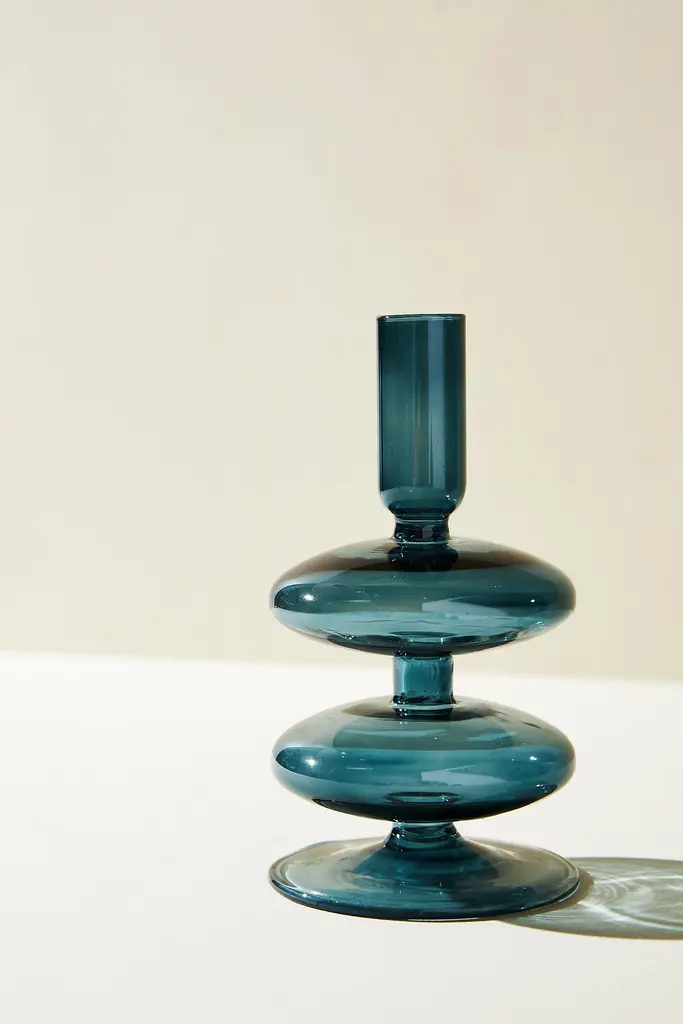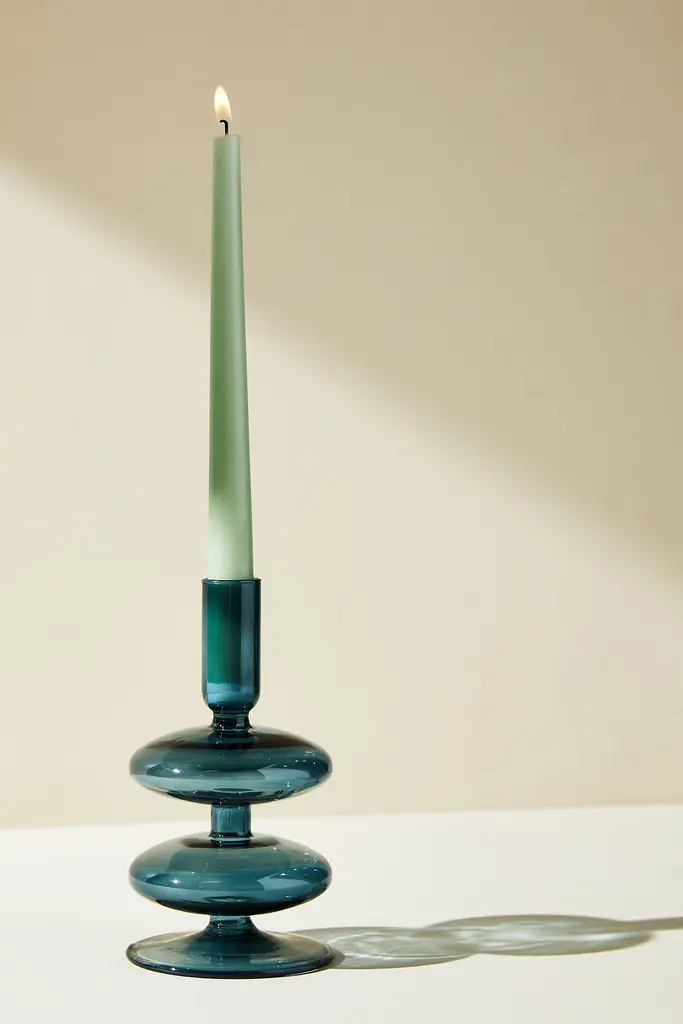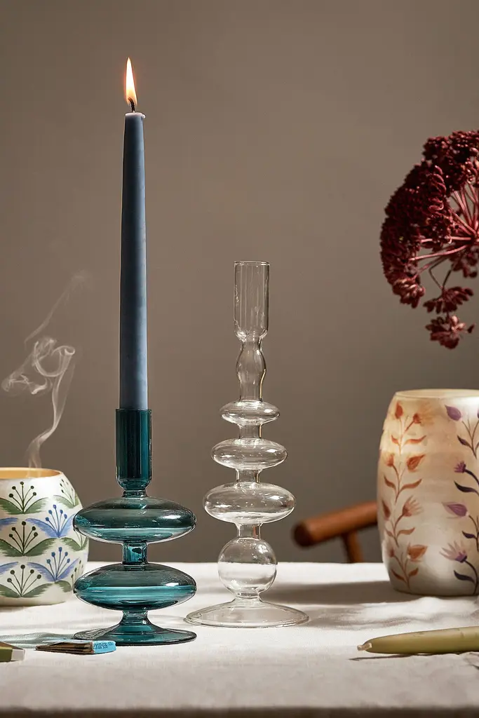 Add intention to your everyday routine or moments of self-care with this beautiful candle holder that features a sculptural glass form. Although an icon of dinner parties, tapers and pillar candles can bring mindfulness to your daily meditations, yoga practice, or evening bubble baths.