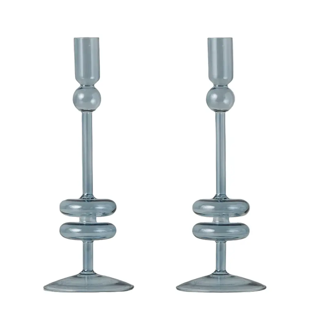 Denim Glass Candlestick, Pair - Large