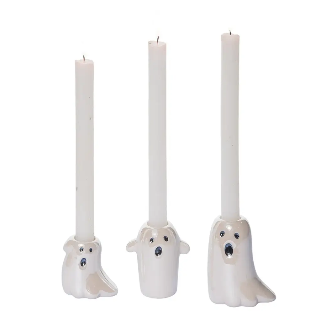 Dolomite 4.25 In. White Halloween Tapered Candle Holder Set Of 3