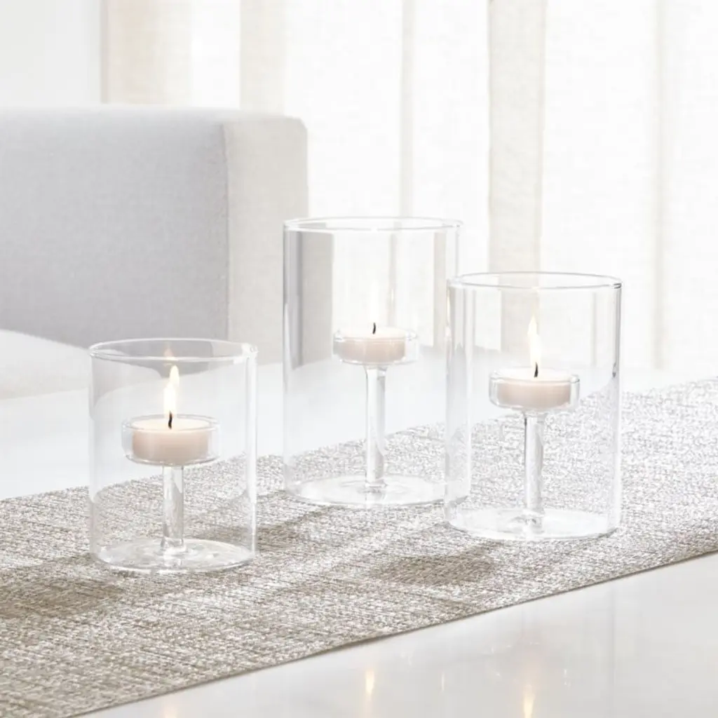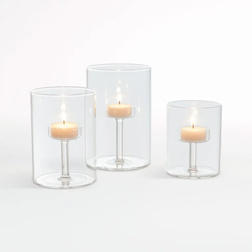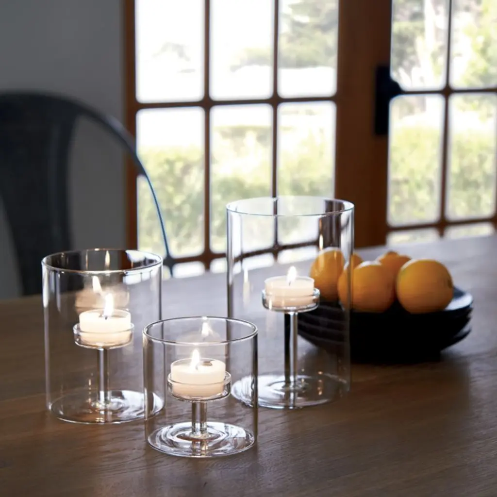 Interior pedestal raises a single tealight light to illuminating heights in Aaron Probyn's clever design that also allows for display of pebbles, seaglass or seasonal seeds and pods.