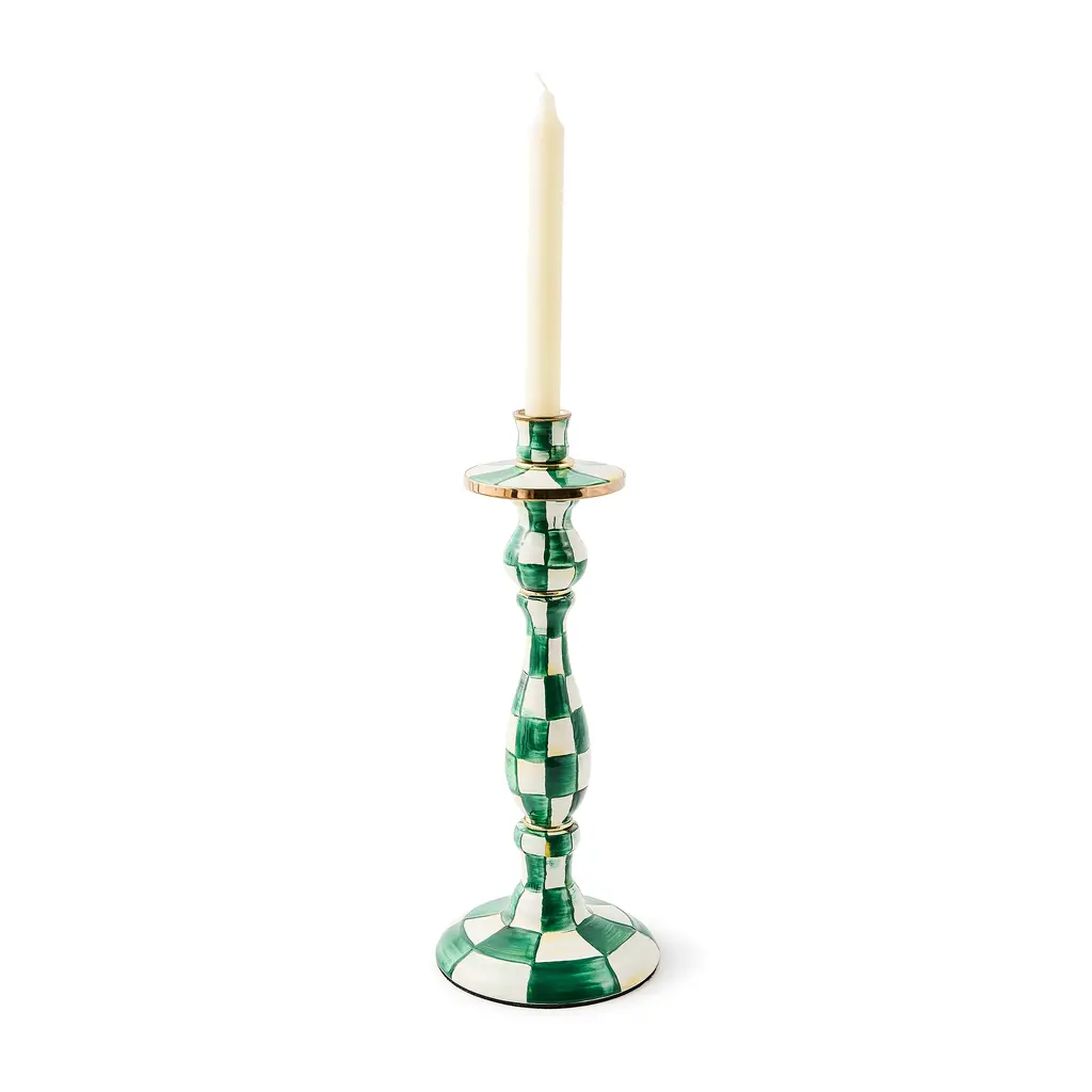 Emerald Check Large Candlestick