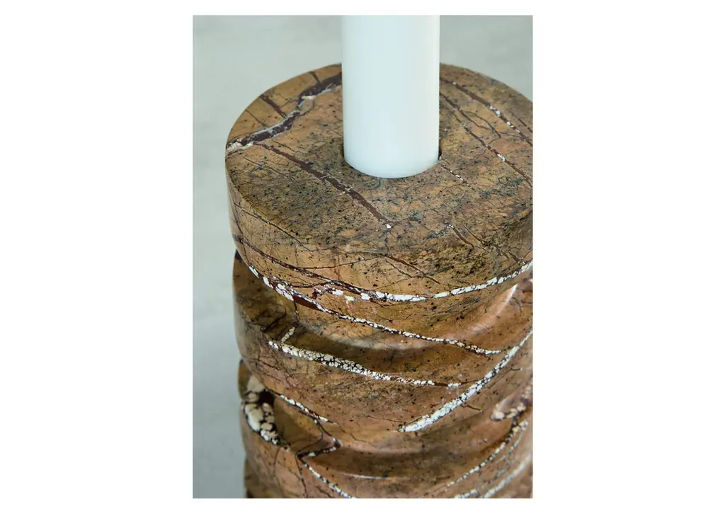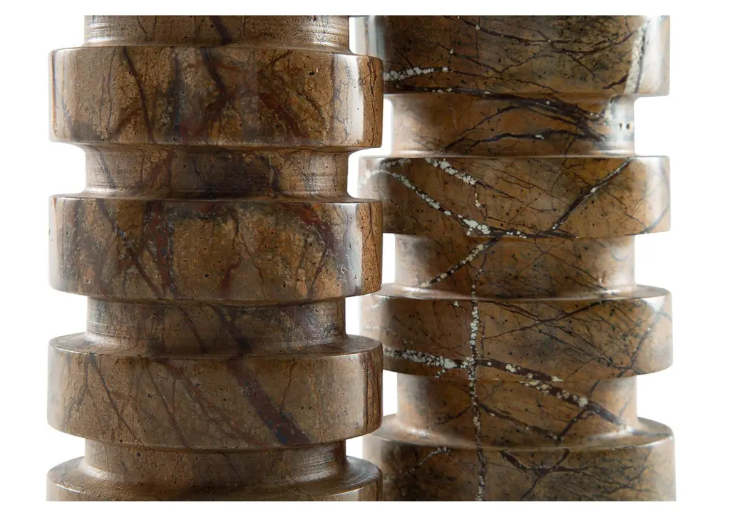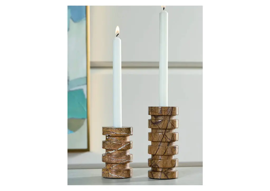 Add a soft glimmer to counters and tables with the Emsleyfield candle holder set. Exuding a sense of earthy elegance, these contemporary tan marble accent pieces bring your design game full circle in a glowing light. Weight 7.000 lbs. (3.15kgs.)