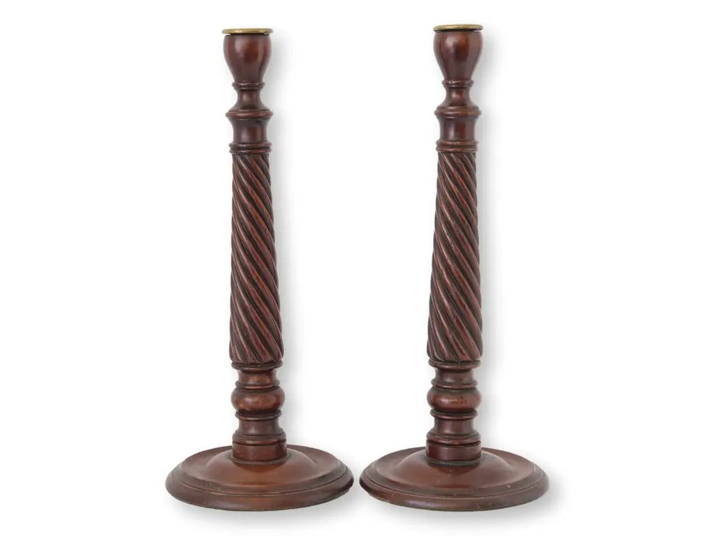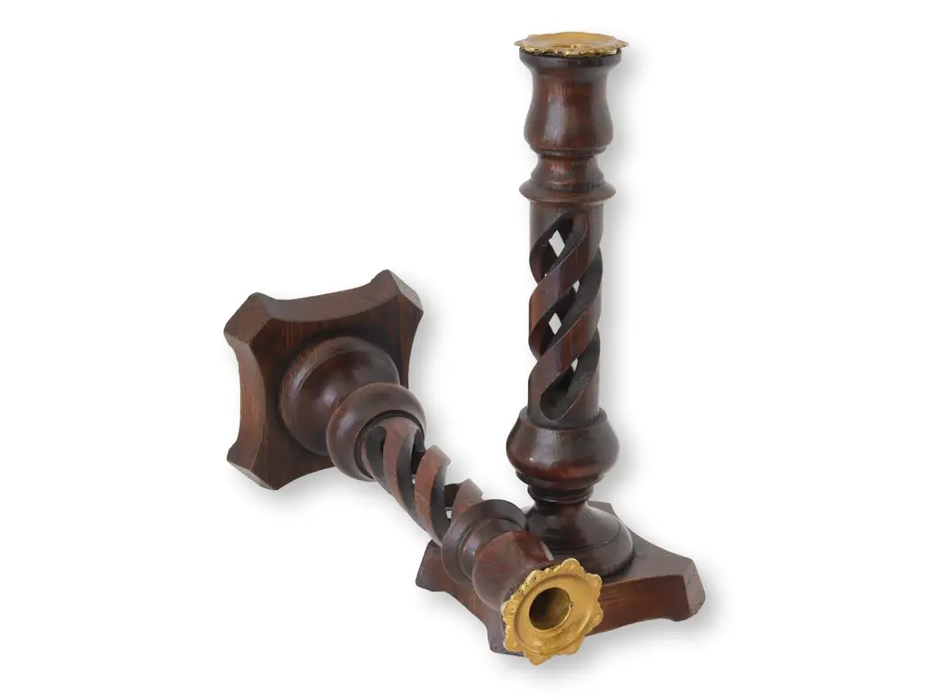 Antique English open twist candlesticks, notable for their unique shorter size. Crafted with exquisite detail, these candlesticks feature an elegant open twist design, a testament to the skilled artisanship of the period. Their unusual shorter stature not only enhances their rarity but also offers a distinctive aesthetic appeal.