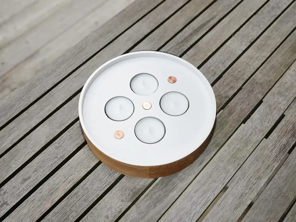Minimalistic wood candle holder for tealights with a splash of colour !The candle holders made of solid oak wood join the simplicity with charm.DESIGN distinguished by the quality mark “SELECTED BY ŁÓDŹ DESIGN FESTIVAL 2017”Enlightenment 4 Color is a candle holder for tealights, designed in 4 colours : white, green, blue, and yellow.Material: certified European solid oak