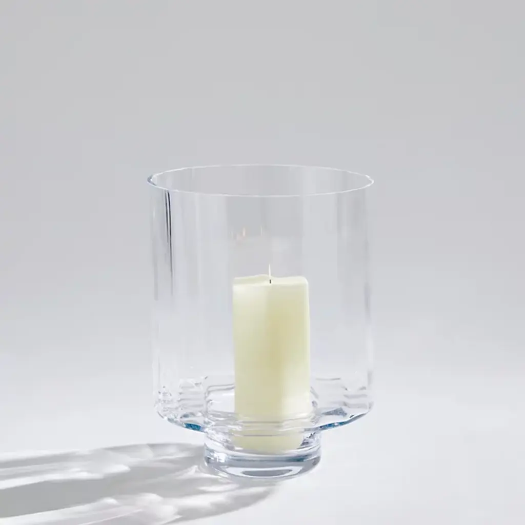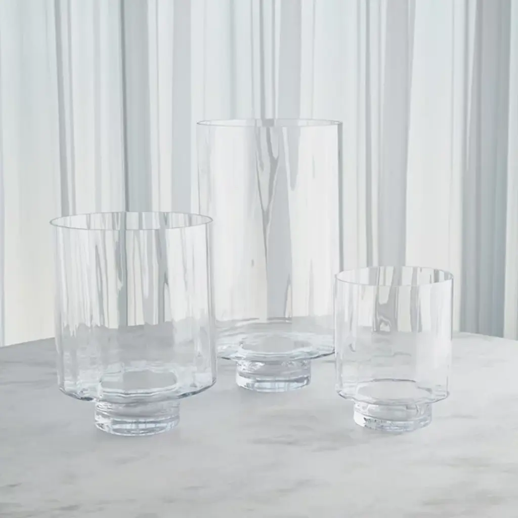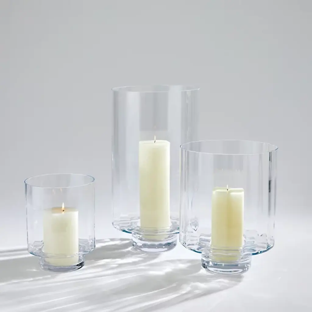 Bring elegance to your living space with the Epic Hurricane Candleholder from Global Views. These candleholders take on cylindrical shapes and are watertight for your convenience. Each candleholder boasts a pedestal-like base to keep your candle properly balanced. The Epic Hurricane Candle Holders are composed of fine glass for a contemporary look.