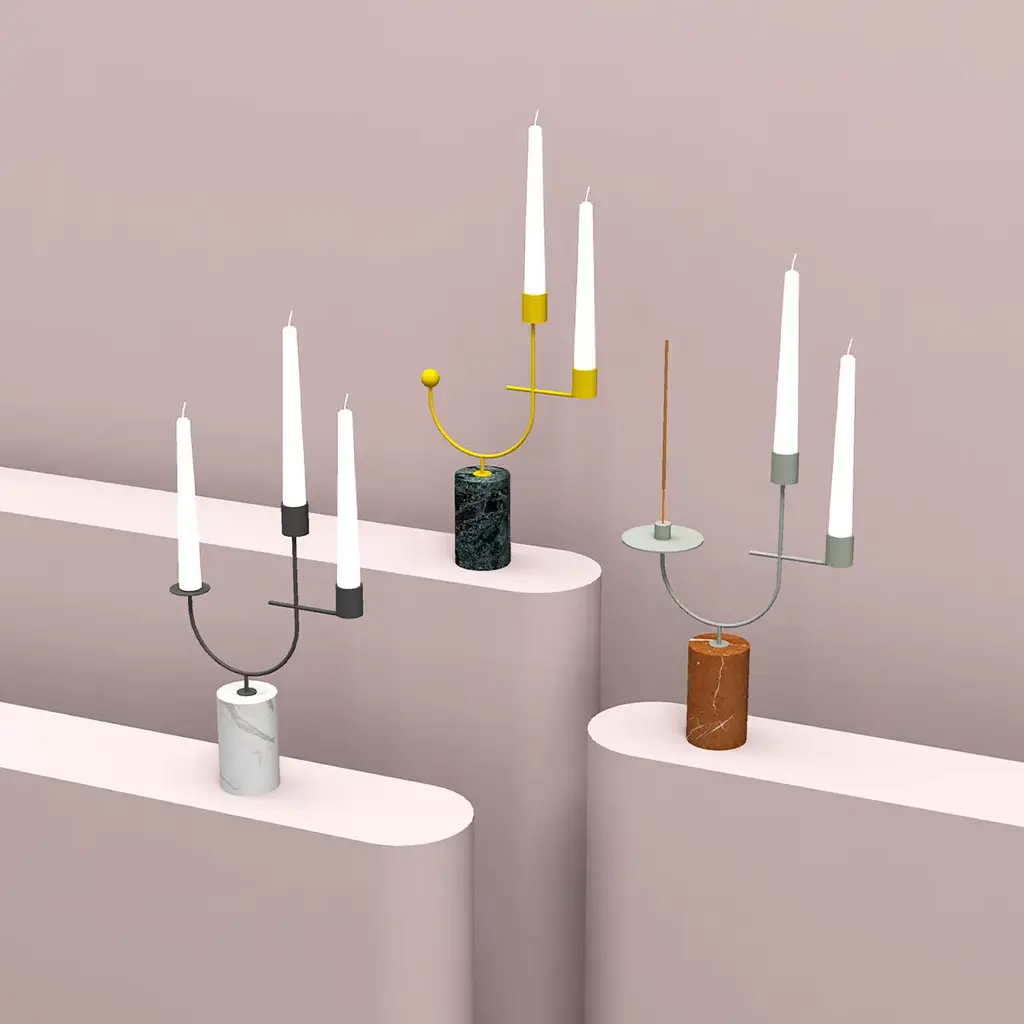 A stunningly lavish addition to a contemporary entryway, bedroom, or industrial living room, this spectacular candle holder delightfully plays on the concept of balance. Part of the Equilibrista Collection, this iconic design is composed of a fine White Carrara marble base and a black-lacquered metal structure with three candlesticks placed at different heights for a striking visual impact. Other colors and marble types are available upon request to the Concierge.