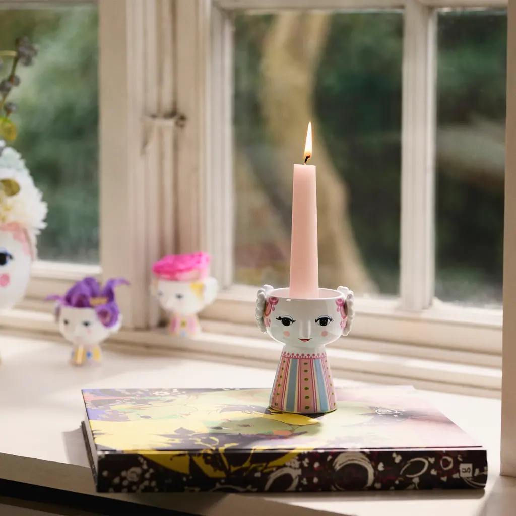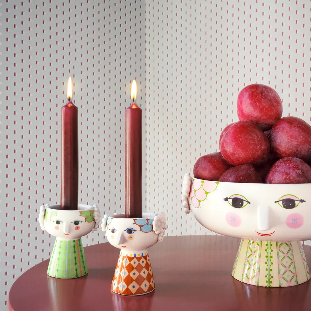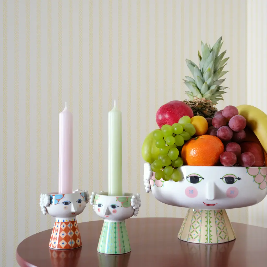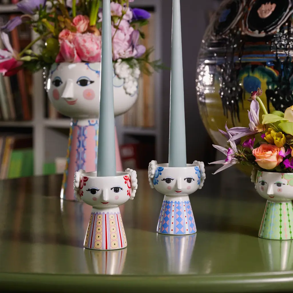 Elevate your home decor with the Eva Candle Holder, inspired by the whimsical art of Bjorn Wiinblad. With vibrant ceramic and floral decals, this exclusive candleholder embodies Wiinblad's iconic style. Add a touch of color and character to your space with Eva's charming smile and playful design. Highlights