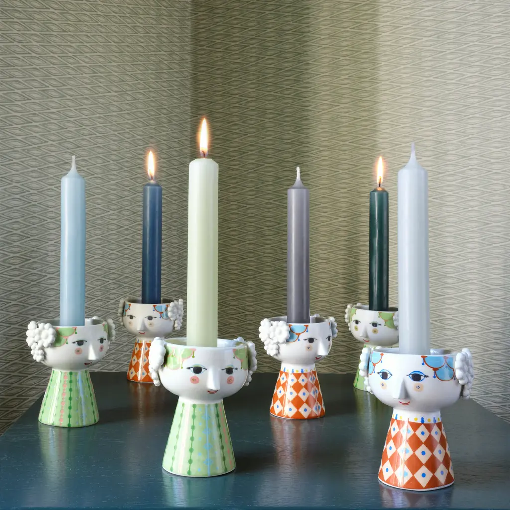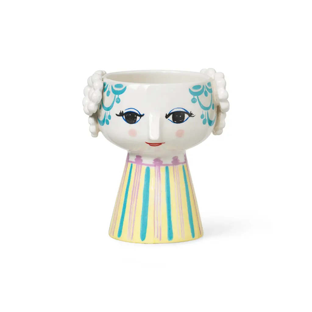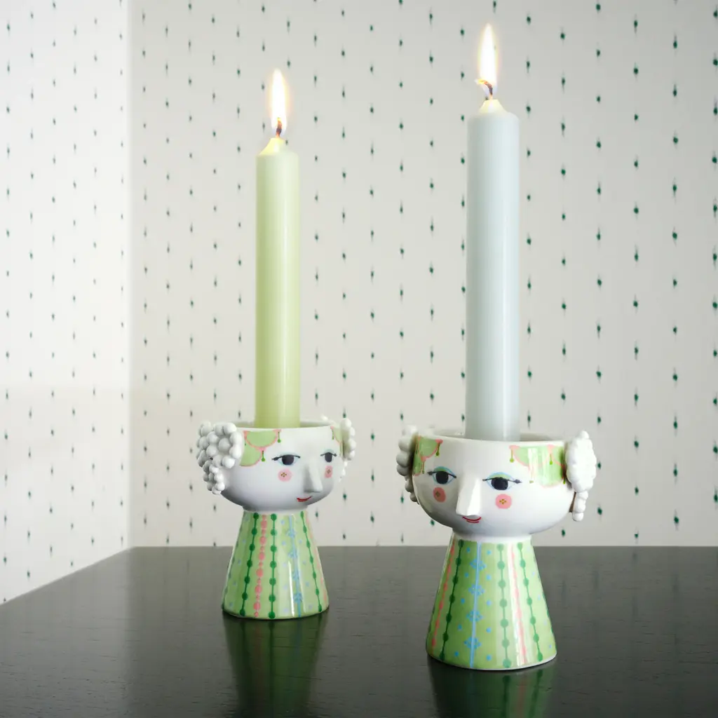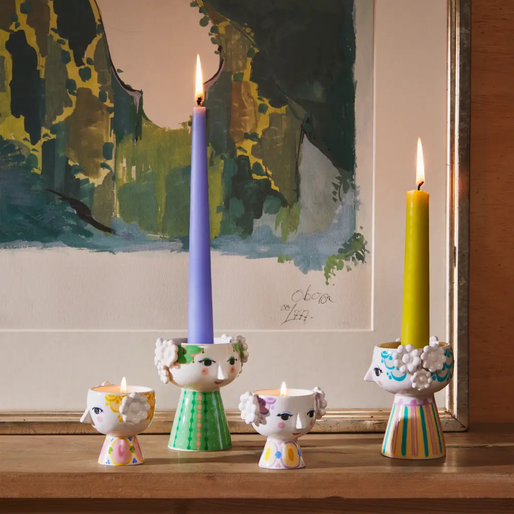 Elevate your home decor with the Eva Candle Holder, inspired by the whimsical art of Bjorn Wiinblad. With vibrant ceramic and floral decals, this exclusive candleholder embodies Wiinblad's iconic style. Add a touch of color and character to your space with Eva's charming smile and playful design. Highlights