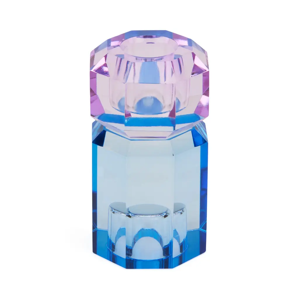 New colors! Shaped and cut to reveal a mesmerizing play of light, this Faceted Crystal Candle Holder is an enchanting object for your dining table, mantle or coffee table. The holder is reversible, with one end that can be used for tapered candles and the other for tea light candles (small and large sizes) or taper candles on both ends (x-small and medium sizes). Mix and match the various colors and sizes of candle holders (each sold separately) for a striking display. Candles not included.