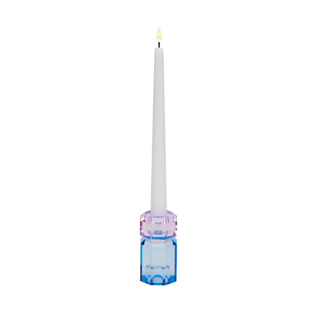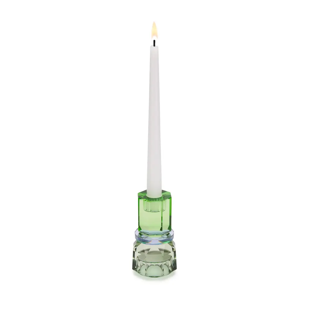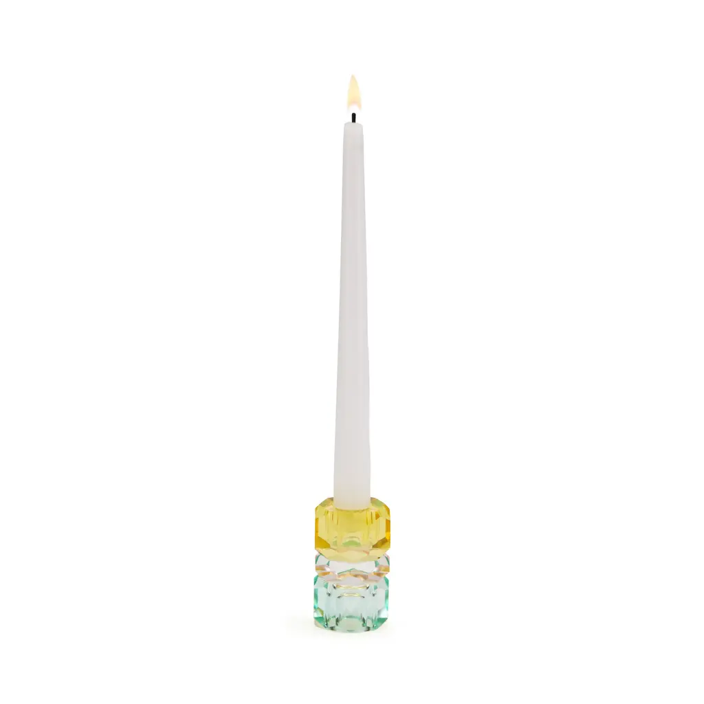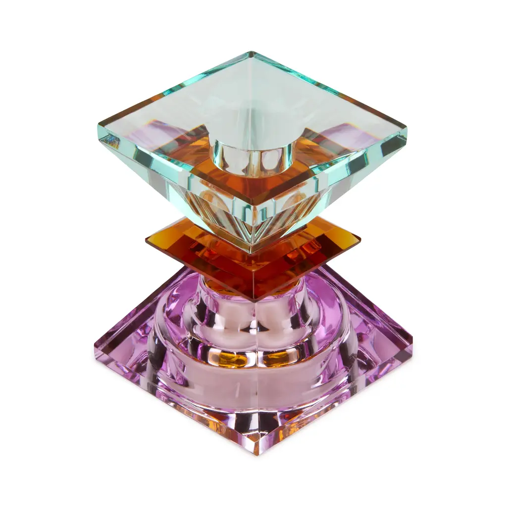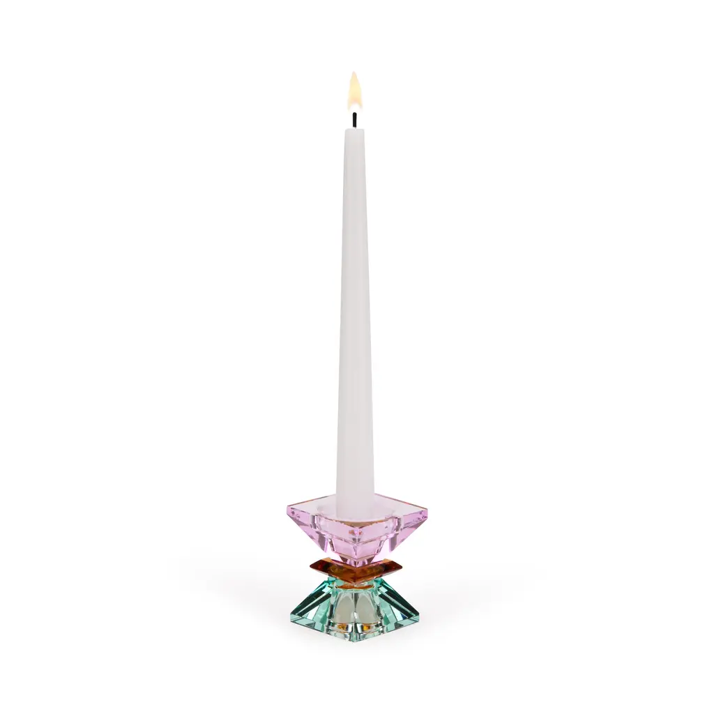 New colors! Shaped and cut to reveal a mesmerizing play of light, this Faceted Crystal Candle Holder is an enchanting object for your dining table, mantle or coffee table. The holder is reversible, with one end that can be used for tapered candles and the other for tea light candles (small and large sizes) or taper candles on both ends (x-small and medium sizes). Mix and match the various colors and sizes of candle holders (each sold separately) for a striking display. Candles not included.