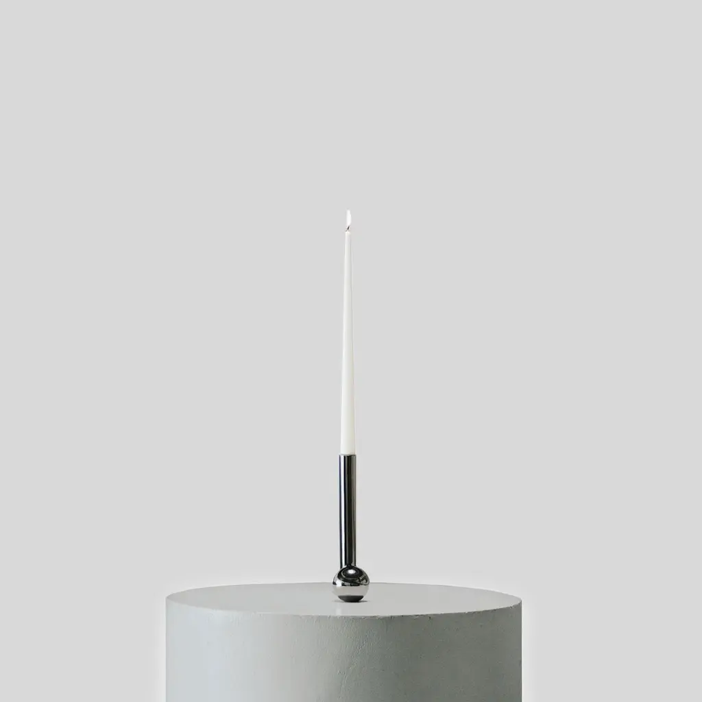 Fado Candlestick by Joana TeixeiraLimited EditionDimensions: D 19 x W 15 x H 22 cm.Materials: Stainless steel.Satin and chrome finishes are available. Customization is available upon request. Please contact us. Time is a concept used to measure the passage of events and is typically divided into seconds, minutes, hours, days, months, and years. It represents the ongoing progression of the past, present, and future.A candle burning is a visual representation of the passage of time. As the candle burns, the flame gradually consumes the wax, and the candle diminishes in size. This process can be seen as a metaphor for the passage of time, as the candle’s light slowly fades away. FADO is a minimalist candleholder that was designed to support this life metaphor.Handcrafted by artists so that the two geometric shapes meet in a perfect junction.Joana Teixeira was born in Oporto and graduated in industrial design. From very early she realized that her path would be to express emotions through objects.Joana started her career in jewelry to fulfill her taste for detail, however, she felt that her curiosity for the processes and the desire for new challenges needed to be expanded, later embarking on industrial design. Obsessed by emotions and with extreme sensitivity, she seeks to transmit the restlessness with which she observes the world through her pieces. Creating a close relationship between object and user, mixing the creative process with production, material, form, and purpose.Aesthetically seeks the harmonization of the senses, having as premises the attention to detail, sobriety, subtleness, and longevity, inspiring and absorbing the chaotic beauty of the world.