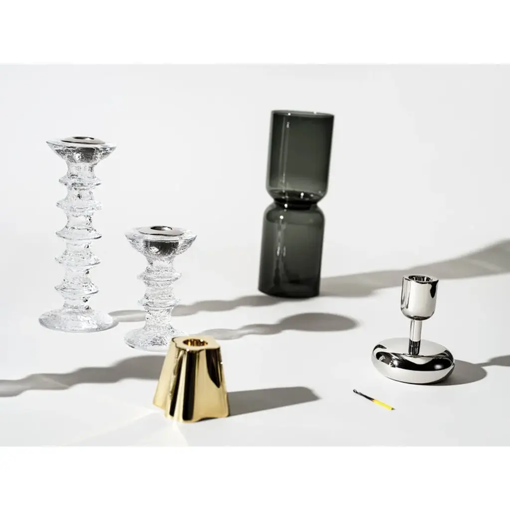 The Festivo candleholders were designed by Timo Sarpaneva for Iittala in 1966. The striking glass objects feature an ice-like, textured design and come in various heights. Create a beautiful candle display with a single or several candleholders – Festivo is a timeless Finnish design classic that will suit any setting and style. Festivo candleholders are made at the Iittala glassworks in Finland.