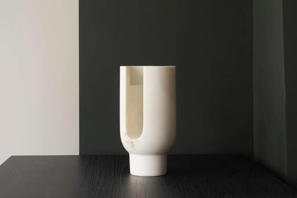 Fior di Pesco Lyra candleholder by Dan YeffetDimensions: Ø 143 x H 275 mmMaterials: Marble Marble available:MarquinaGrey St LaurentPortoroPaonazzoCalacattaBorn in 1971 in Jerusalem, Israel. Studied Industrial Design at Bezalel Academy: School of Art and Design in Jerusalem (1999-2001). He then moved to the Netherlands where he graduated from the Gerrit Rietveld Academy in Amsterdam in 2002 (BA in Industrial/product design). After his graduation he set up his studio in Amsterdam. In 2005 he moved his studio to Paris where he still works. Dan‘s work stretches from space to objects - and everything in between - and in various methods, from Classic Craft work to cutting edge technologies.