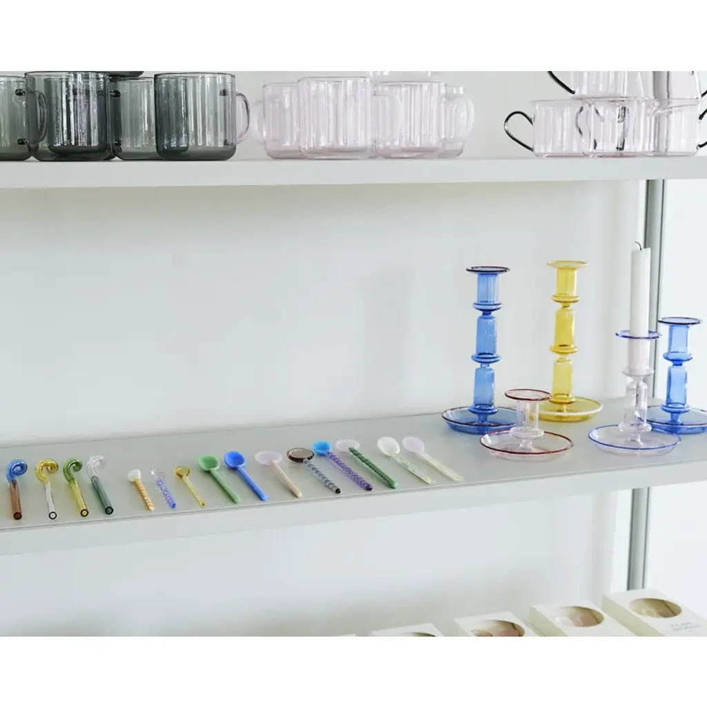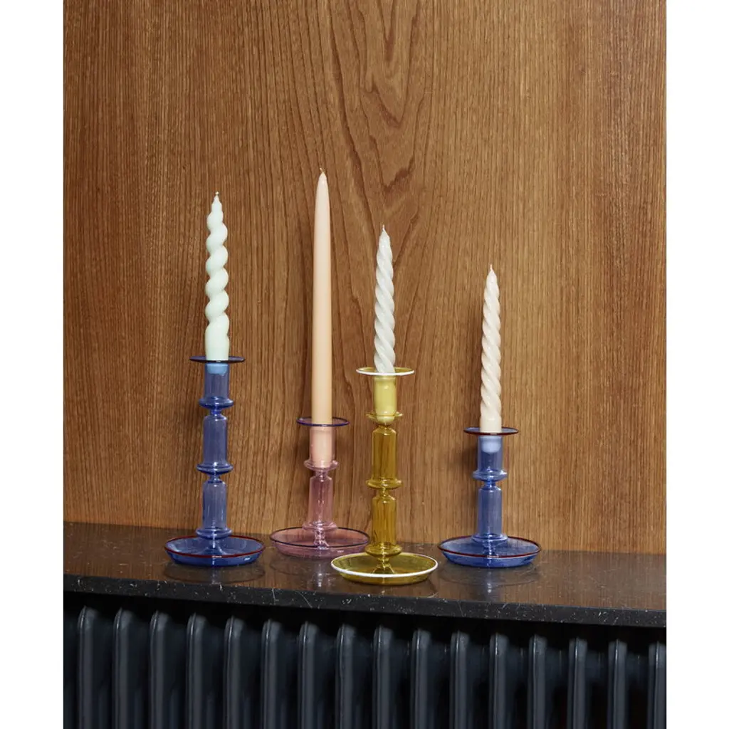 Flare by HAY is a modern interpretation of a classic candleholder: the bright colors and transparent structure make the Flare candleholder a distinctive and fresh addition to your table setting and home decor. Further, the highlight-colored edges enhance the playfulness of the appearance. The 8.27 in (21 cm) high candleholder is made of durable borosilicate glass.