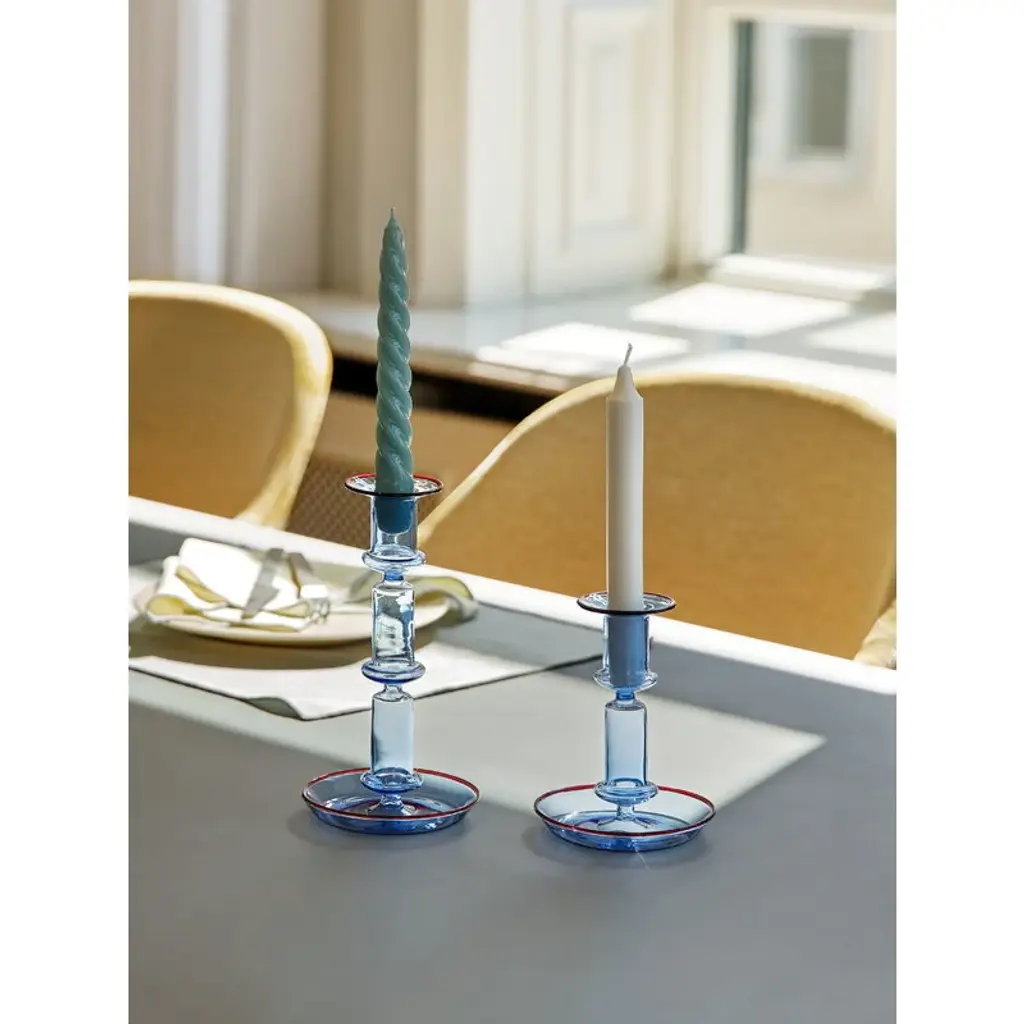 Flare Candleholder, Tall, Light Blue With Red Rim