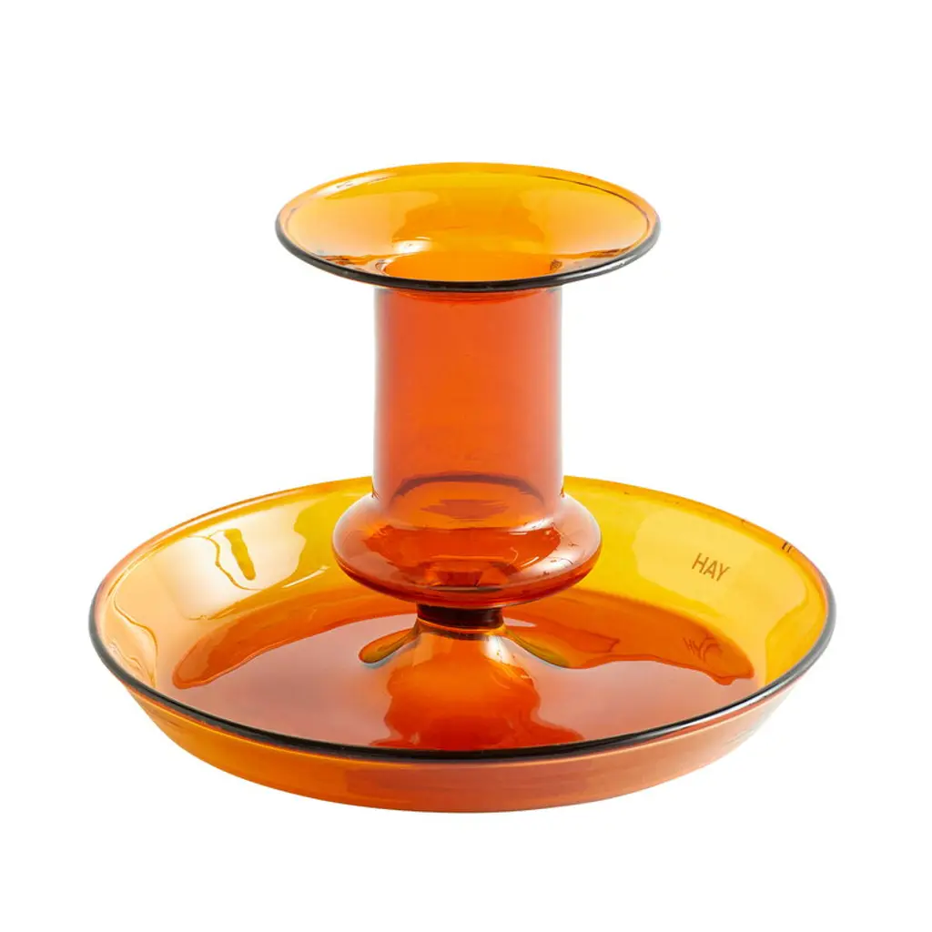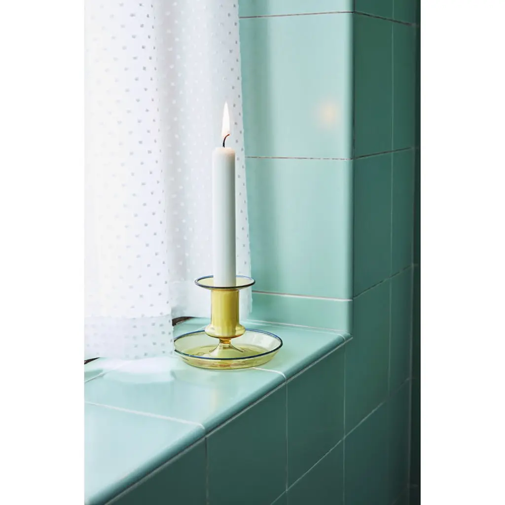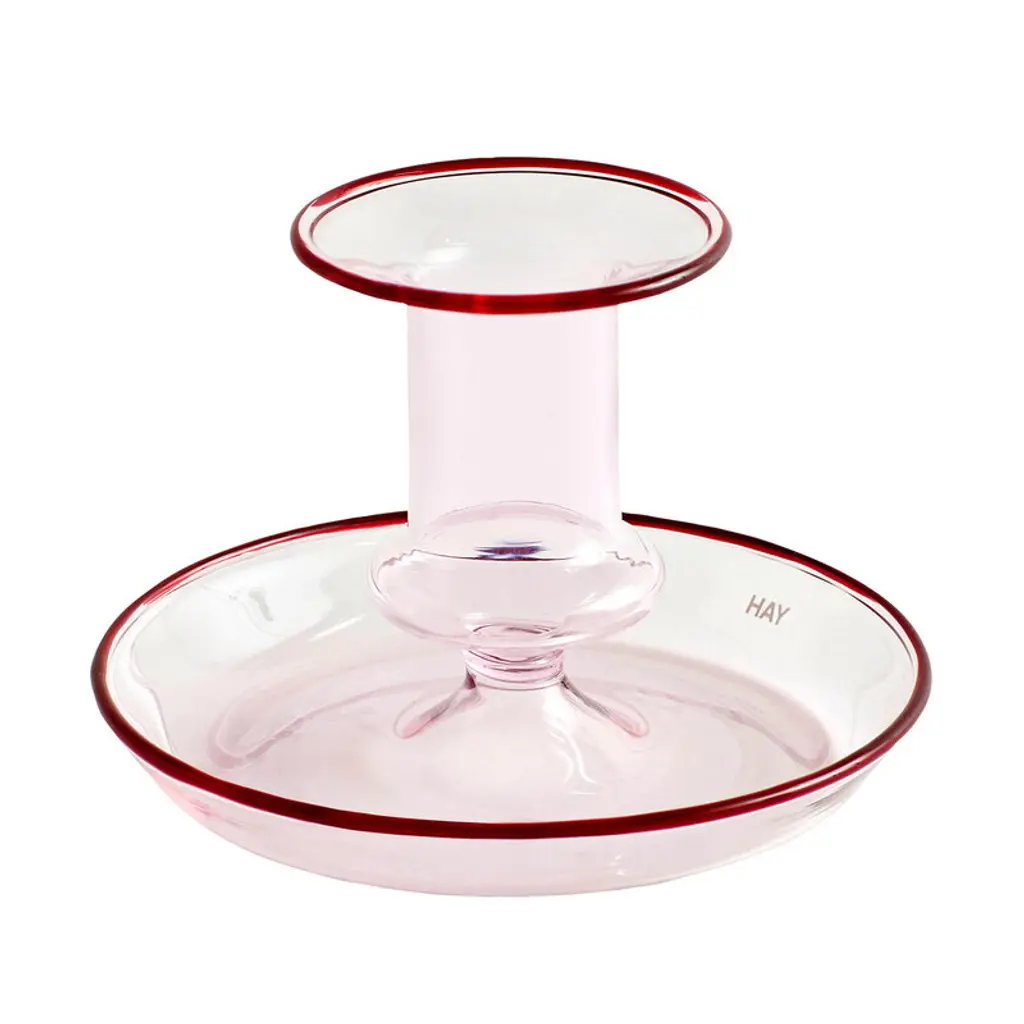 Flare by HAY is a modern interpretation of a classic candleholder: the bright colors and transparent structure make the Flare candleholder a distinctive and fresh addition to your table setting and home decor. Further, the highlight-colored edges enhance the playfulness of the appearance. The 2.95 in (7,5 cm) high candleholder is made of durable borosilicate glass.
