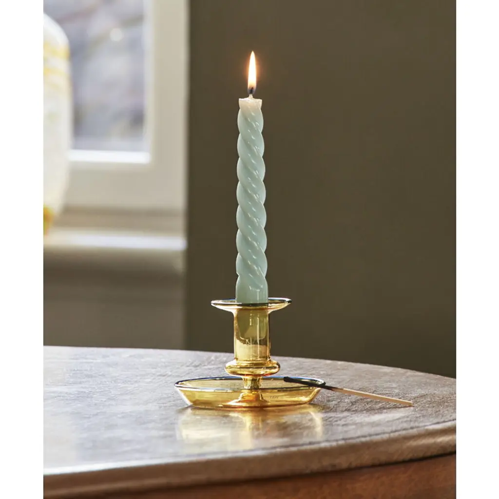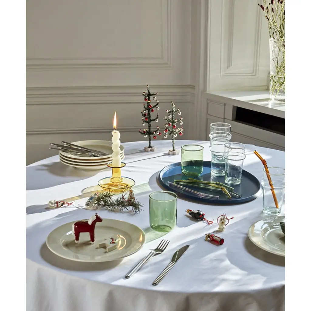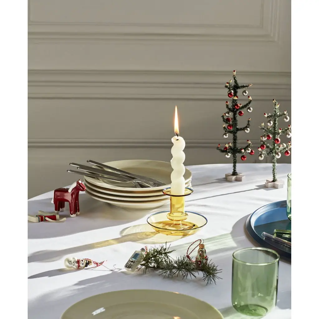 Flare by HAY is a modern interpretation of a classic candleholder: the bright colors and transparent structure make the Flare candleholder a distinctive and fresh addition to your table setting and home decor. Further, the highlight-colored edges enhance the playfulness of the appearance. The 2.95 in (7,5 cm) high candleholder is made of durable borosilicate glass.