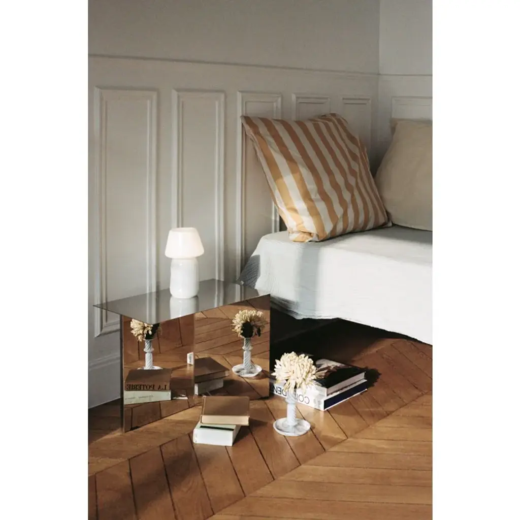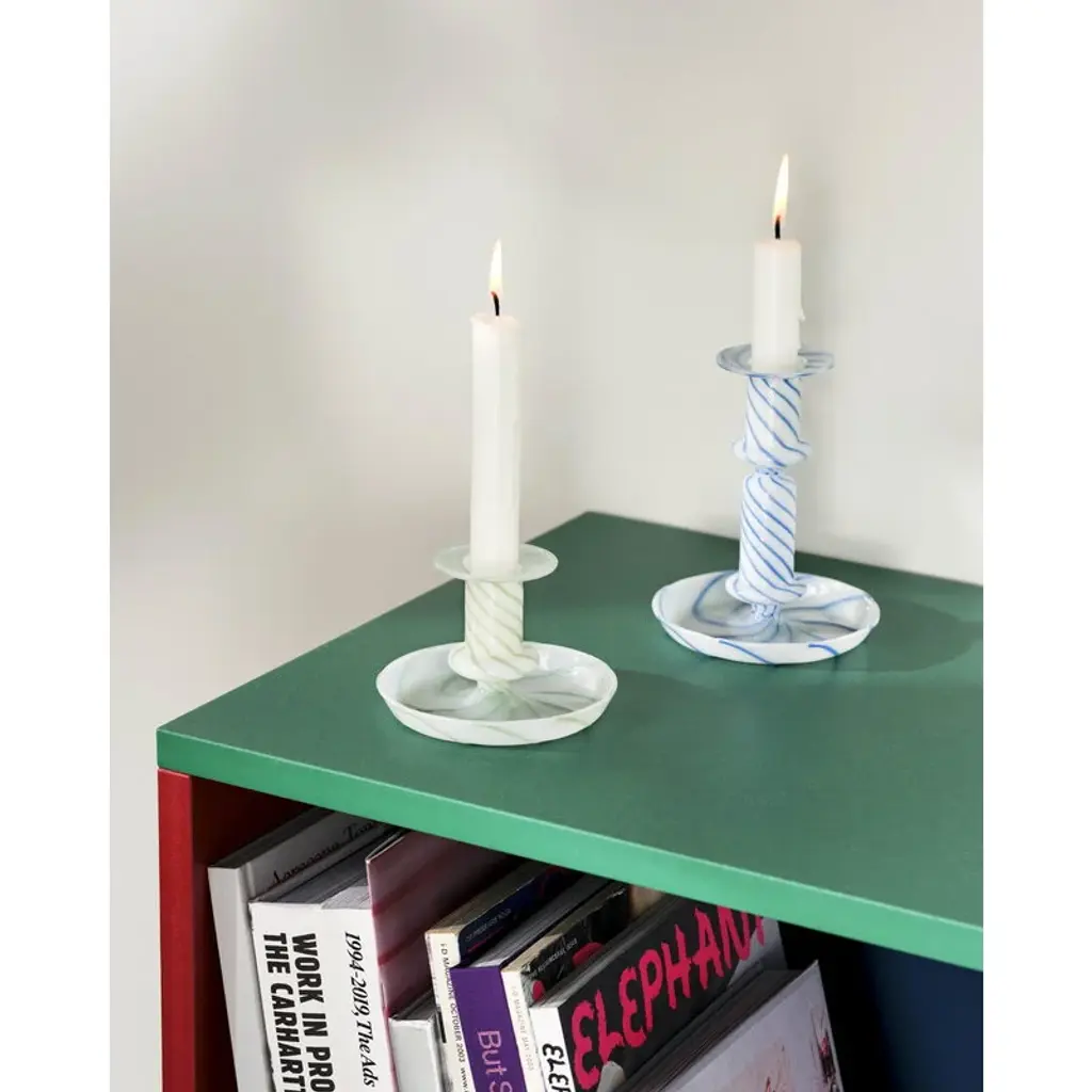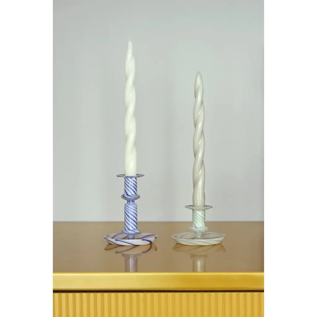 Flare by HAY is a modern interpretation of a classic candleholder: milky, delicately translucent glass makes the Flare candleholder a distinctive and fresh addition to your table setting and home decor. The beautiful spiral stripe pattern adds a playful touch to the candleholder's look. The elegant candleholder is made of durable borosilicate glass.