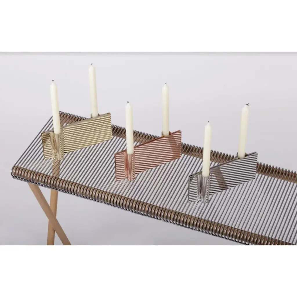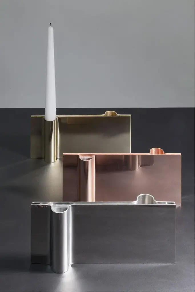 Set of 3 folio candle holders by mingardo dimensions: d22.5 x w2.2 x h11 cm materials: polished natural copper, polished natural brass, polished natural stainless steel. Weight: 4.5 kg folio is a modern candle’s holder, very minimalistic in the shape conceive a tri-dimensional aspect simply with a craftsman’s hand made gesture that creates its curvy shape. Made out from a pair of 2mm thick copper layers attached with a solid sole, it can find place everywhere. A natural oxidation, which is its own natural finish and enhancement, will eventually accurse, either fastly or more quietly, depending on the frequency and location of its use. Mingardo ilario founded mingardo blacksmith workshop in 1970, after over twenty years’ experience in the metal processing field. The production was initially focused on simple blacksmith works for the construction industry. Over the time, it has become more refined, enabling the company to collaborate with internationally renowned companies and architects: from the first collaborations with architect carlo scarpa to the more recent commissions for museo del novecento in milan, parco della musica in florence, and teatro petruzzelli in bari. Over the years, the workshop has achieved great results, with the production of unique metal products, all hand-wrought by a highly skilled team of specialized artisans. Nowadays, it is highly regarded in the local artisan field for its high-end refined finishing touches and details, and for its know-how.