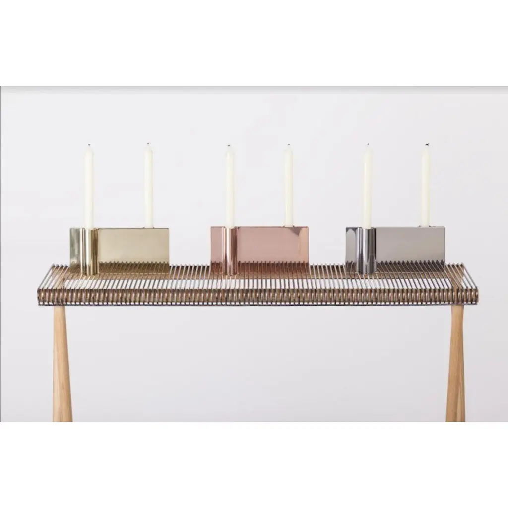 Folio candle holder by MingardoDimensions: D22.5 x W2.2 x H11 cm Materials: polished natural copper.Weight: 1.5 kgAlso available in different finishes: Polished natural copper, Polished natural brass, Polished natural stainless steel.Folio is a modern candle’s holder, very minimalistic in the shape conceive a tri-dimensional aspect simply with a craftsman’s hand made gesture that creates its curvy shape.Made out from a pair of 2mm thick copper layers attached with a solid sole, it can find place everywhere. A natural oxidation, which is its own natural finish and enhancement, will eventually accurse, either fastly or more quietly, depending on the frequency and location of its use.Mingardo Ilario founded Mingardo Blacksmith Workshop in 1970, after over twenty years’ experience in the metal processing field.The production was initially focused on simple blacksmith works for the construction industry. Over the time, it has become more refined, enabling the company to collaborate with internationally renowned companies and architects: from the first collaborations with architect Carlo Scarpa to the more recent commissions for Museo del Novecento in Milan, Parco della Musica in Florence, and Teatro Petruzzelli in Bari.Over the years, the Workshop has achieved great results, with the production of unique metal products, all hand-wrought by a highly skilled team of specialized artisans. Nowadays, it is highly regarded in the local artisan field for its high-end refined finishing touches and details, and for its know-how