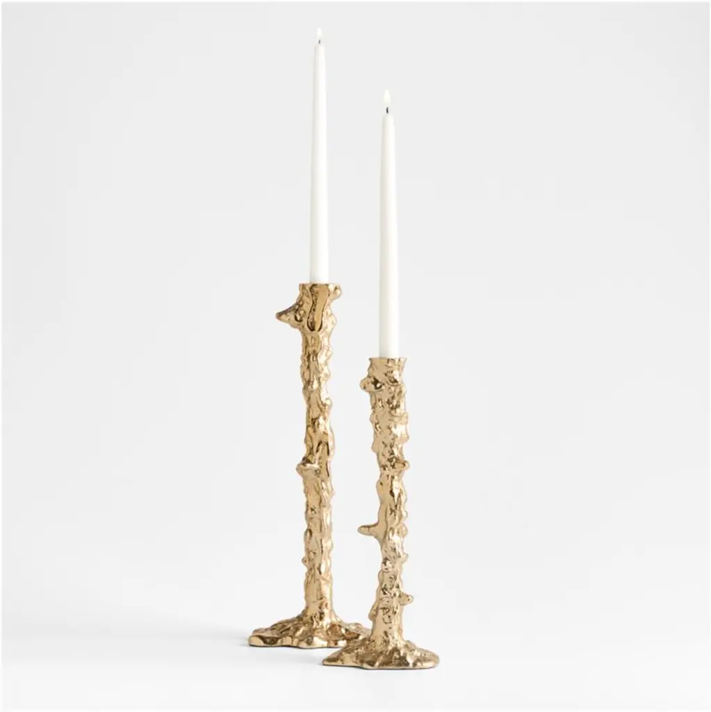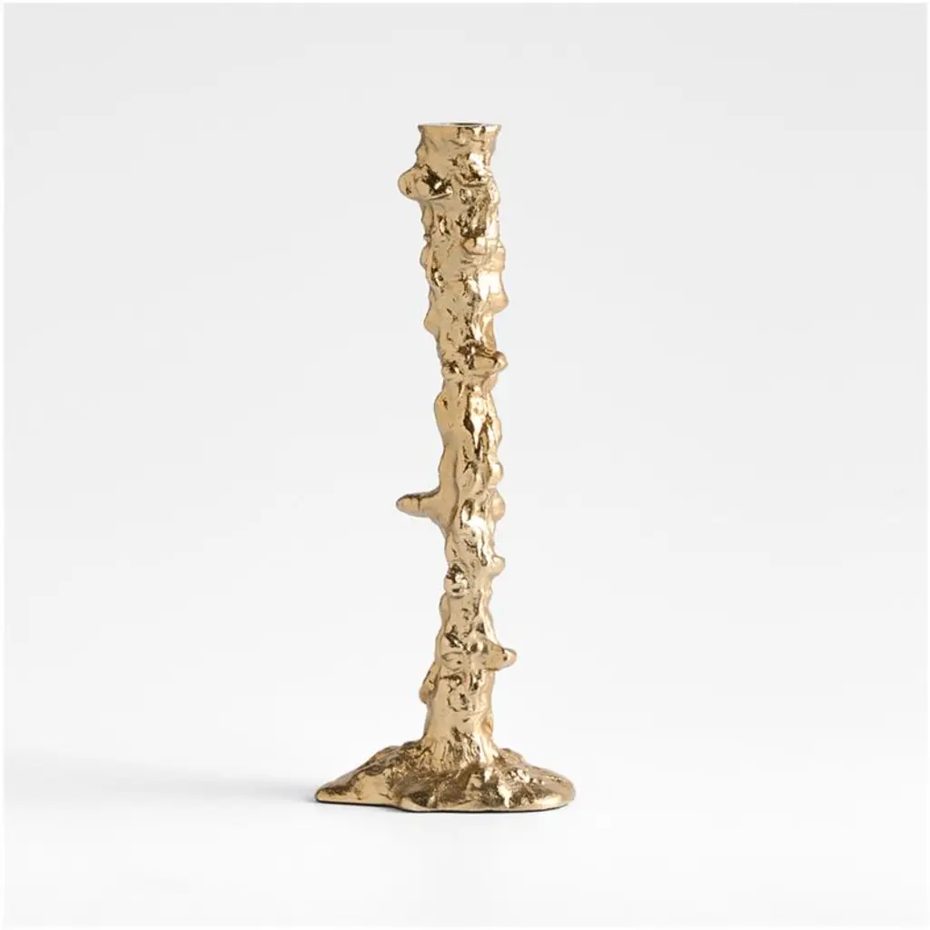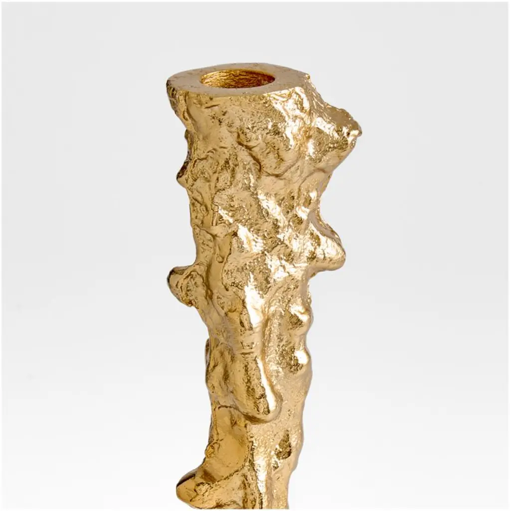 Foundry Small Melted Gold Metal Taper Candle Holder 14"