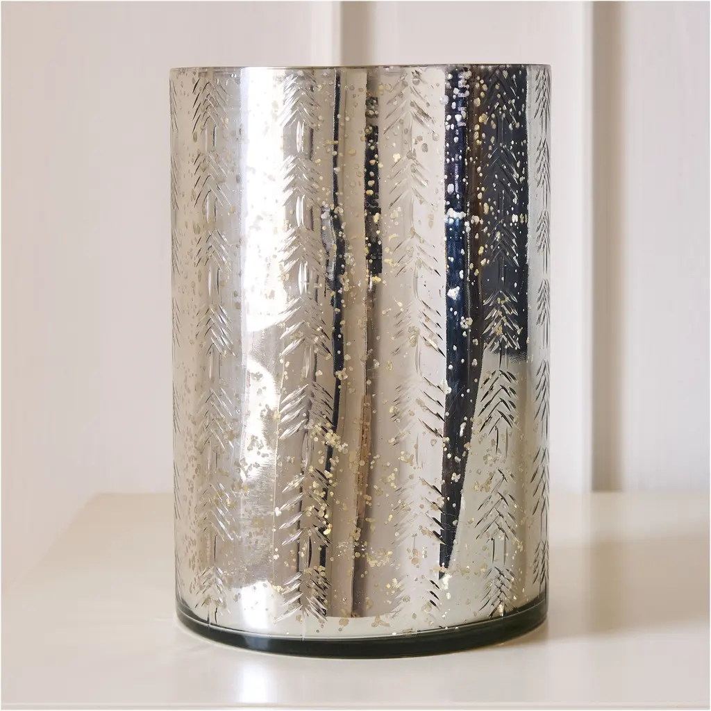 Frosted Pine Mercury Glass Candle Holder, Set Of 3