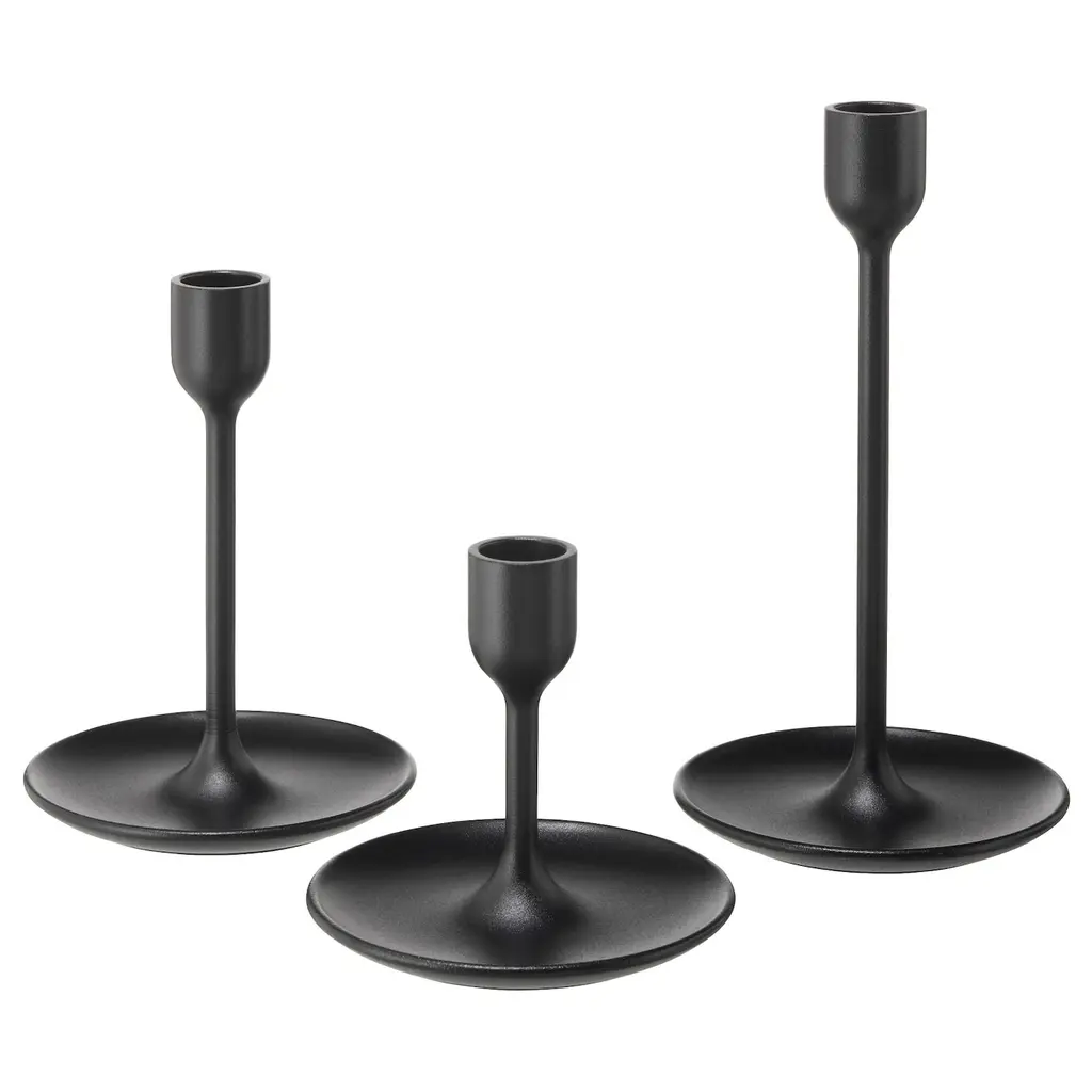 FULLTALIG Candlestick, set of 3 - black. The candlesticks come in different heights to create a vibrant look when used together. The candlestick give both an atmospheric light and is beautiful in its own right. Includes: 3 candlesticks (height 4", 5¾" and 8").