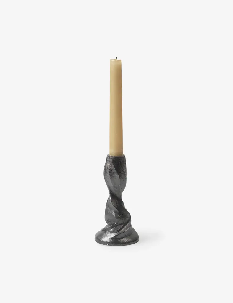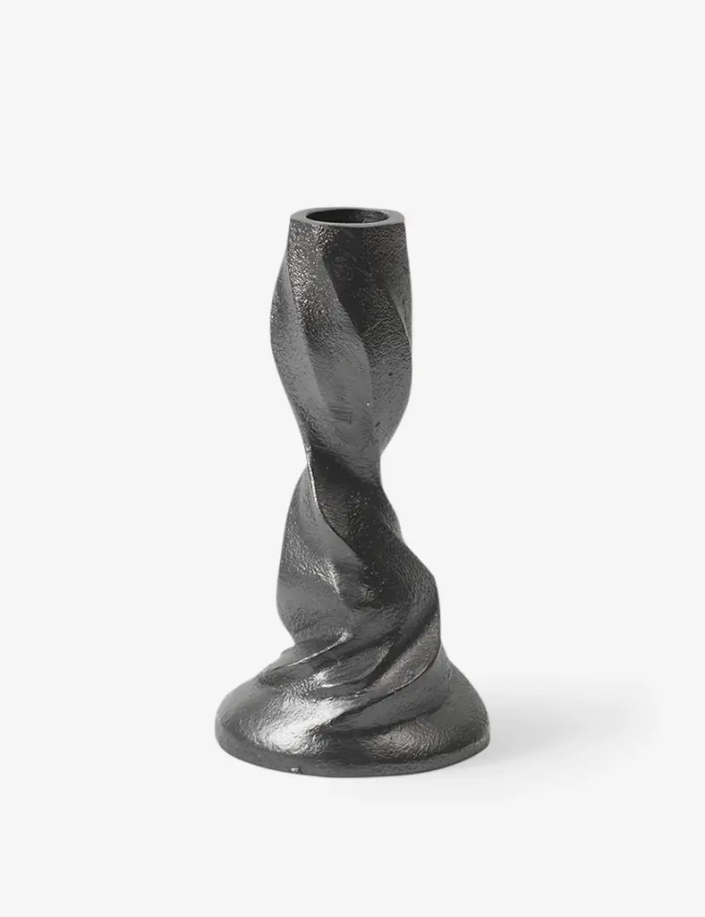 Sometimes, it's the smallest touches that set the tone. This metal candlestick's twisting shape offers a sculptural edge, tempering a wrought industrial feel with sculptural elegance to elevate any tabletop curation.