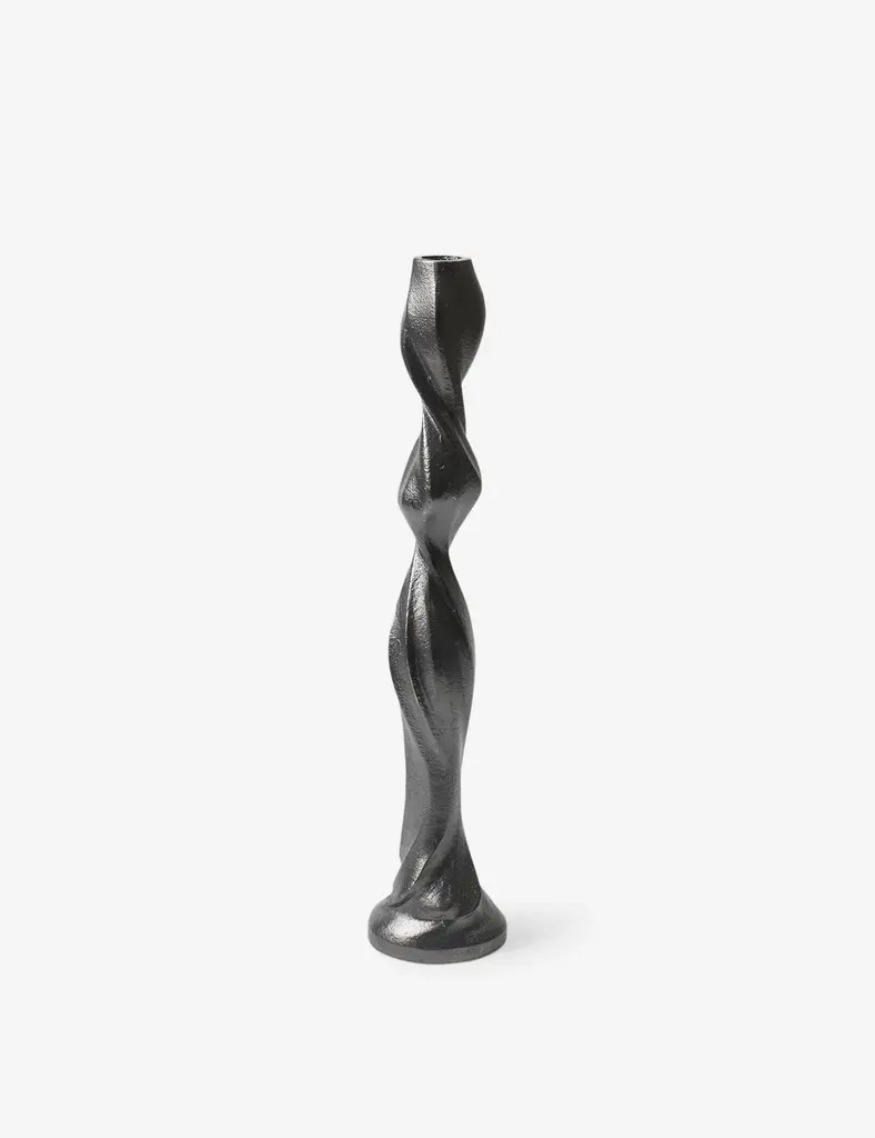 Sometimes, it's the smallest touches that set the tone. This metal candlestick's twisting shape offers a sculptural edge, tempering a wrought industrial feel with sculptural elegance to elevate any tabletop curation.