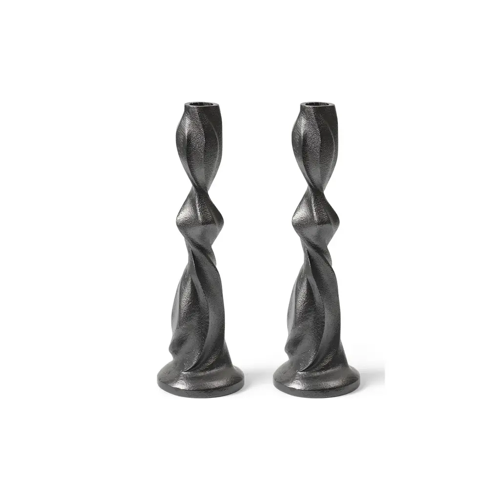 The Gale Candle Holder (Set of 2) from Ferm Living is a stunning, sculptural piece that adds a unique, dimensional quality to any setting. Crafted from recycled cast aluminum, it is an eco-friendly and eye-catching addition to your decor. Inspired by the dynamic patterns of a storm, it will bring a sense of movement and intrigue to your space. Highlights