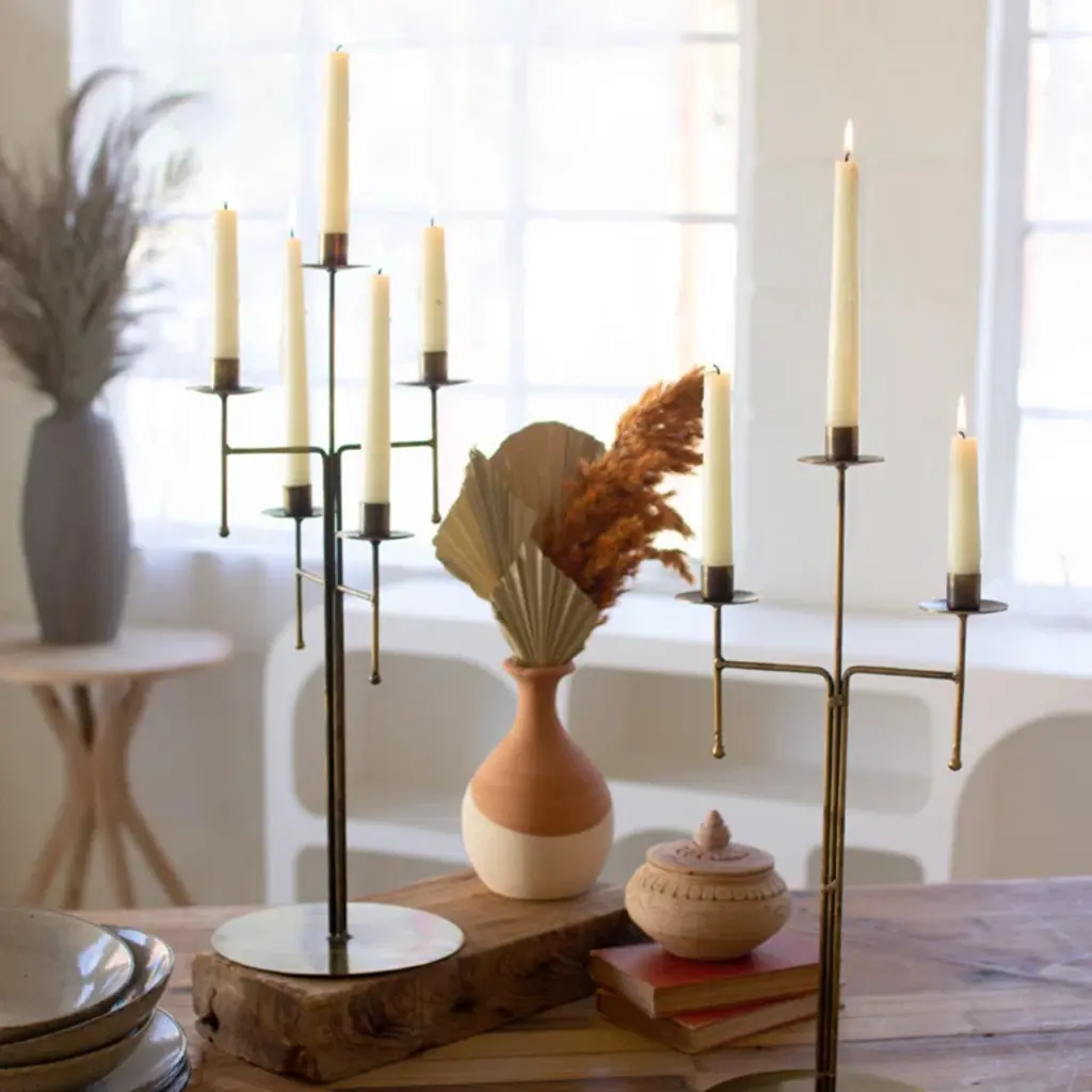 Gemma Antique Brass Table Top Candelabra With Five Candle Holders