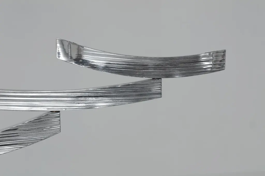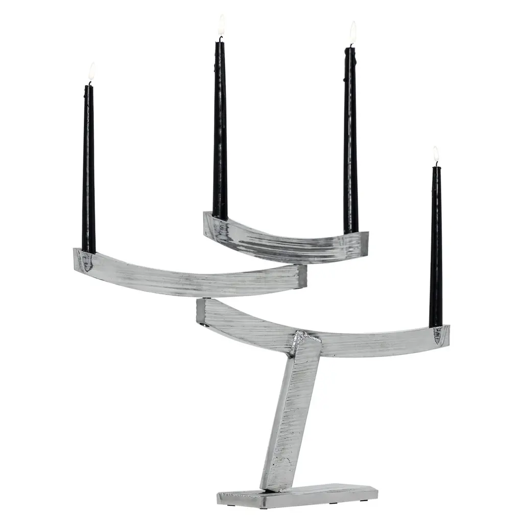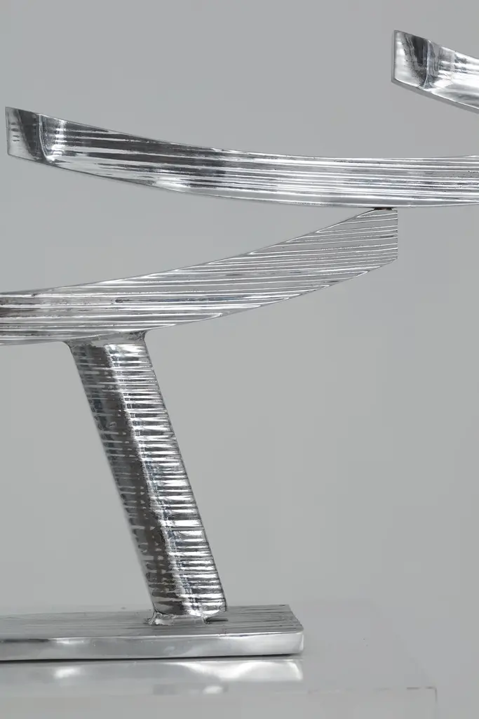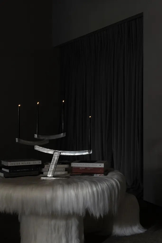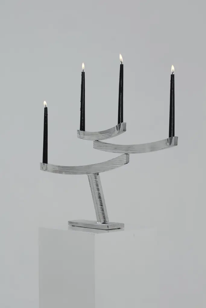 Geology Candle Holder by Atelier V&FDimensions: D 10 x W 80 x H 43 cm. Materials: Cast aluminum.The collection of「 GEOLOGY 」is our reflection and exploration of the synchrony of nature’s work and human intervention.「GEOLOGY candle holder 」 is inspired by a stone waste that has been water jet cut. The end result of an instant of the powerful water jet cutter’s work assimilates the thousands of years of weathering, reminding us of the strength of time. We created an artificial weathering effect on the surface and a natural curve that resembles Chinese calligraphy with its strength and softness. The outcome is dynamic like the Western sculpture and steady like the Eastern pine trees.「 GEOLOGY candle holder 」is portable and durable in use andbeautiful and spiritual in aesthetics.Atelier V&F was co-founded by Chen Furong and Vega Zaishi Wang in Shenzhen. Chen Furong graduated from the Shanghai Institute of Visual Arts, majoring in comprehensive design. And he started the design studios WUU and CHEN FURONG Studio. Vega Zaishi Wang graduated from the London College of Fashion and Central Saint Martin and founded the designer brand VEGA ZAISHI WANG. The designers’ professional background and artistic upbringing become the intrinsic character of Atelier V&F. Their expertise, professional knowledge, and years of experience in the design field are the fertile ground for the development and exploration of Atelier V&F that enable it to break the divide of territories and cultures, and with an inclusive narrative to interpret aesthetics and functionality. The two designers’ poetics of life and living, their respect for different materials’ true nature, and their unceasing pursuit of exquisite craftsmanship instill vitality into Atelier V&F’s works from artistic sculptures, installments, and space to practical and utilitarian objects. Vega’s intuitive riding on fashion’s romantic urge and flow andFurong’s philosophical perspective on practical design is combined in one artistic expression, making their works both detailedly practical and ceremonial. As a married couple, the duo instills powerful emotional strength to the work of Atelier V&F, trying to interpret and represent the non-utilitarian and simple beauty in a coldly rational and precise world.