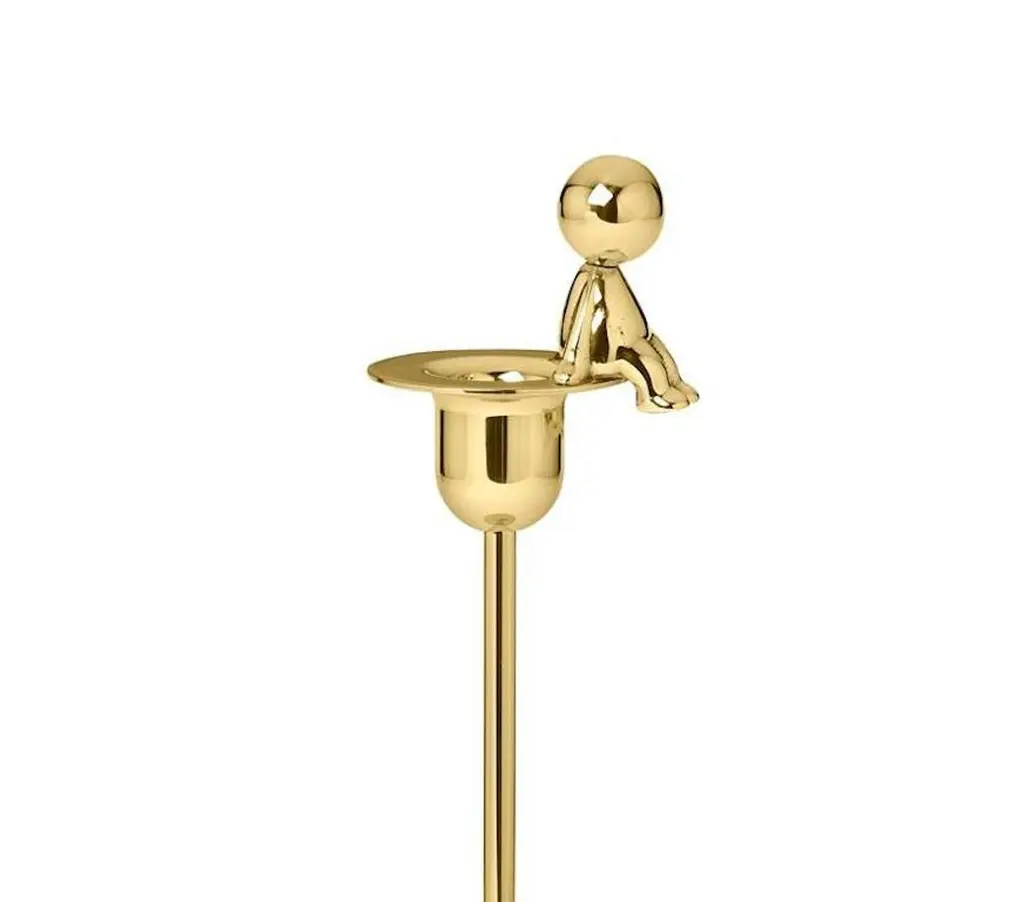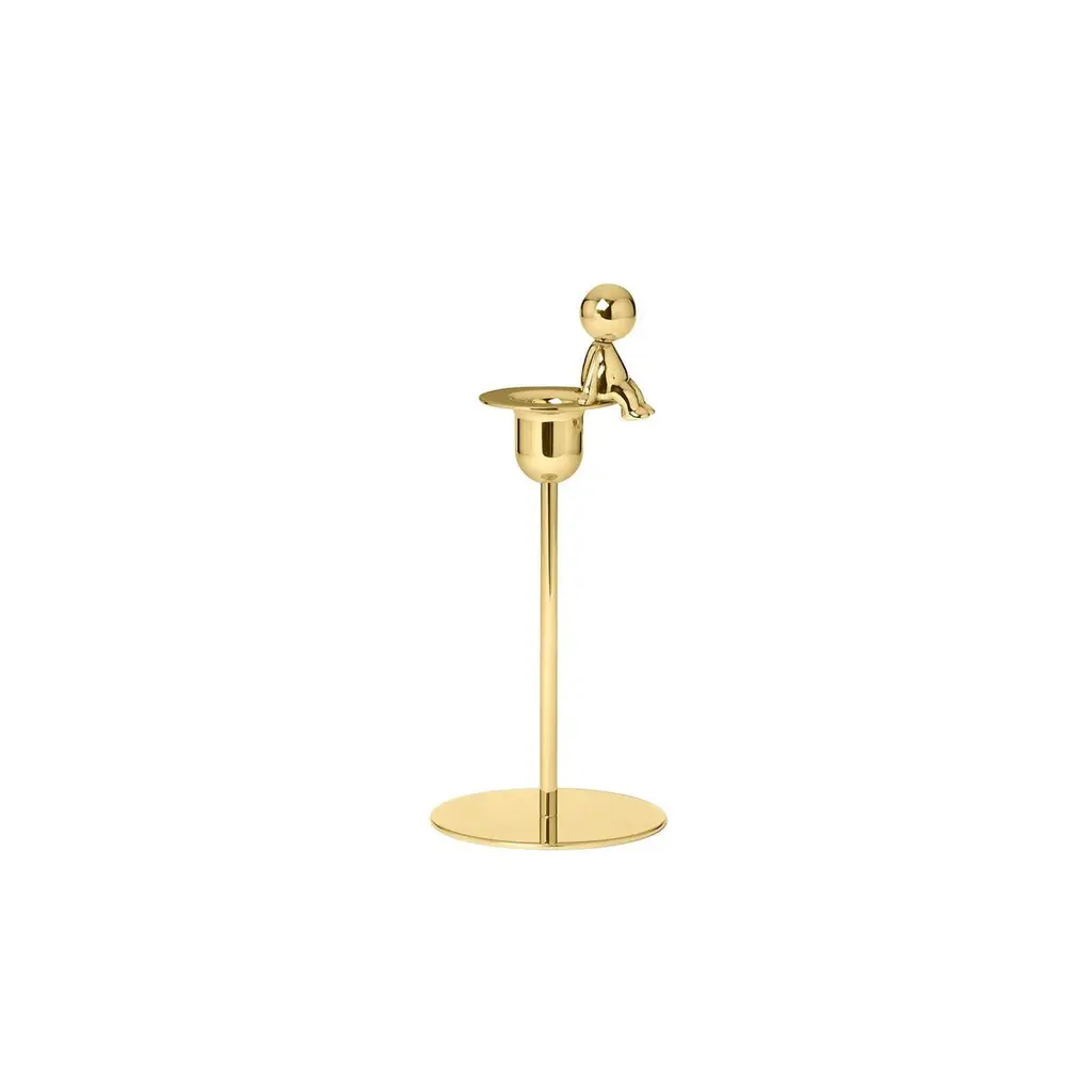 Ghidini 1961 Omini The Thinker Short Candlestick In Brass By Stefano Giovannoni